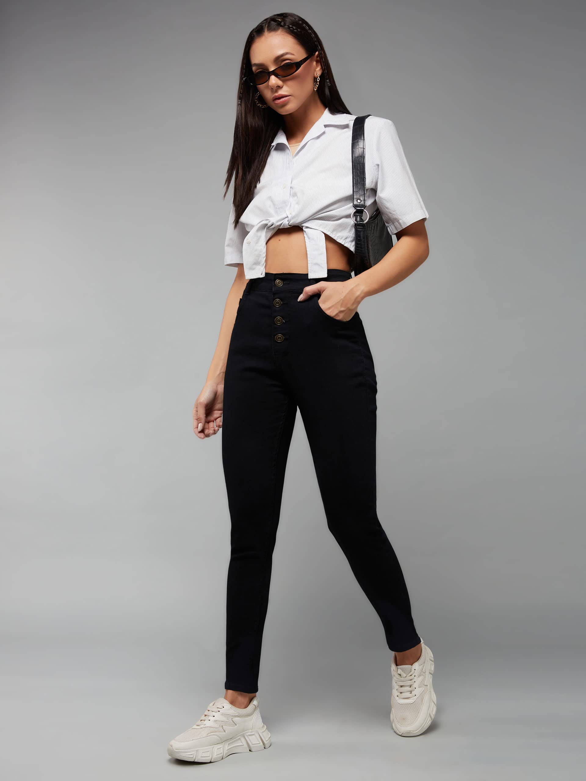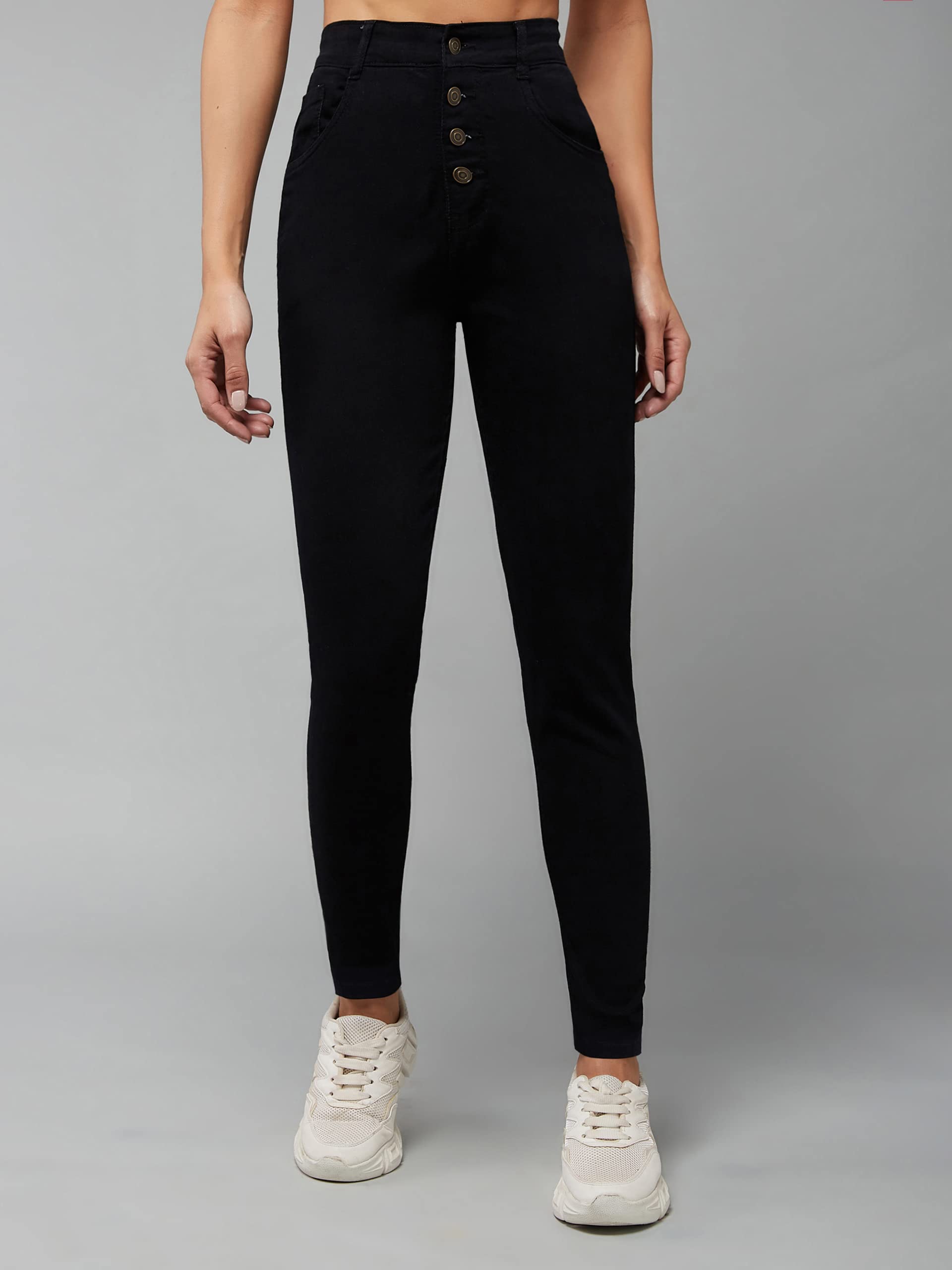 Dolce Crudo Women's Fit High Rise Regular Length Stretchable Denim Jeans (DOAW18DEN02-79-342-38, Shadow Black, 38)