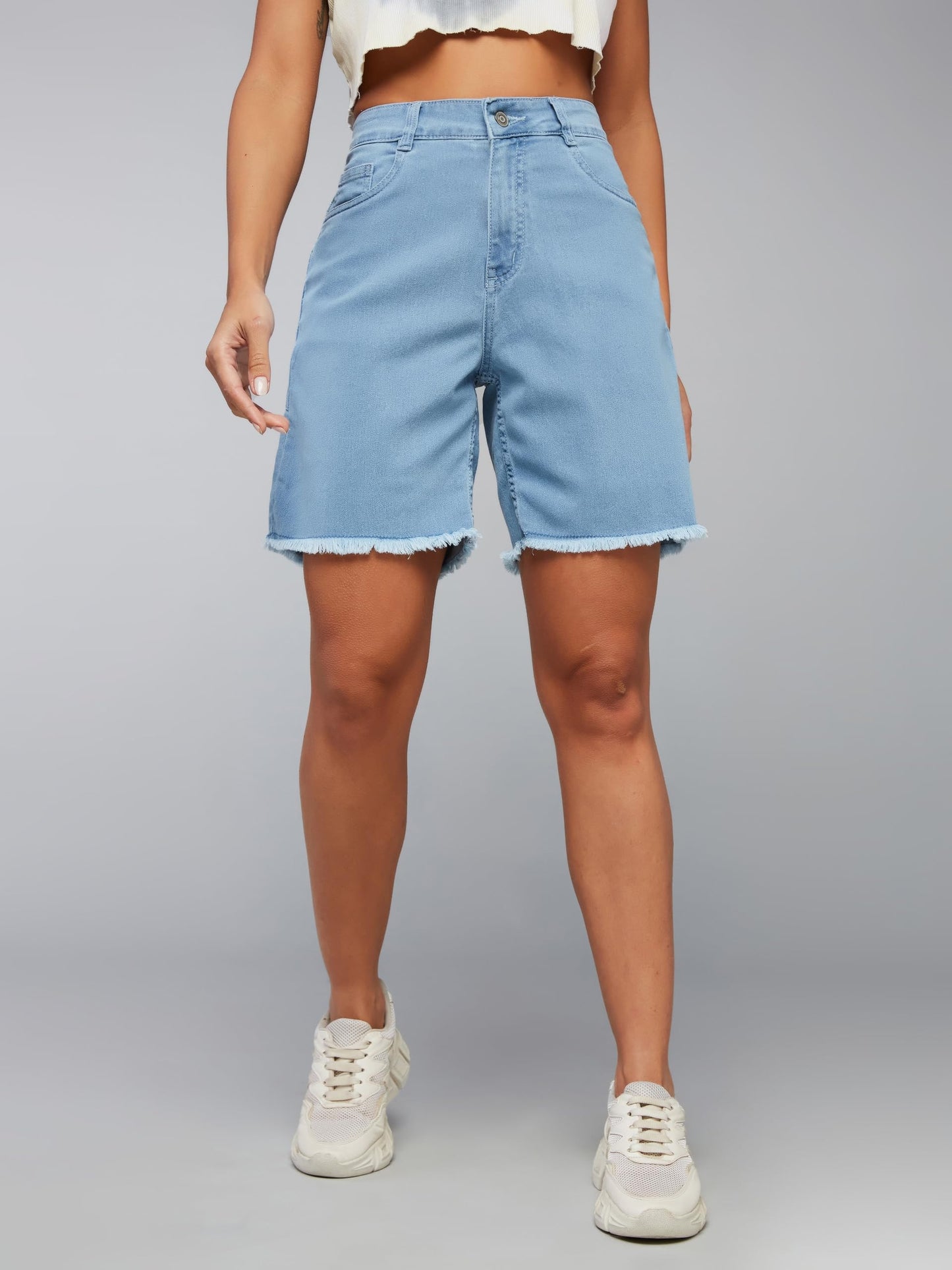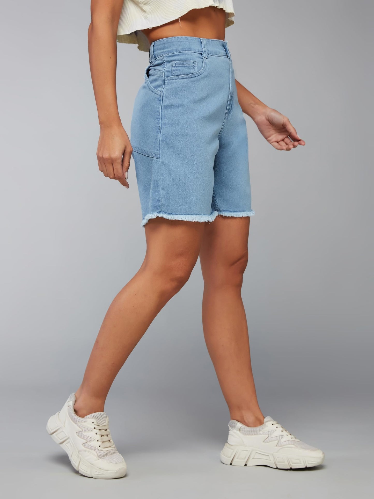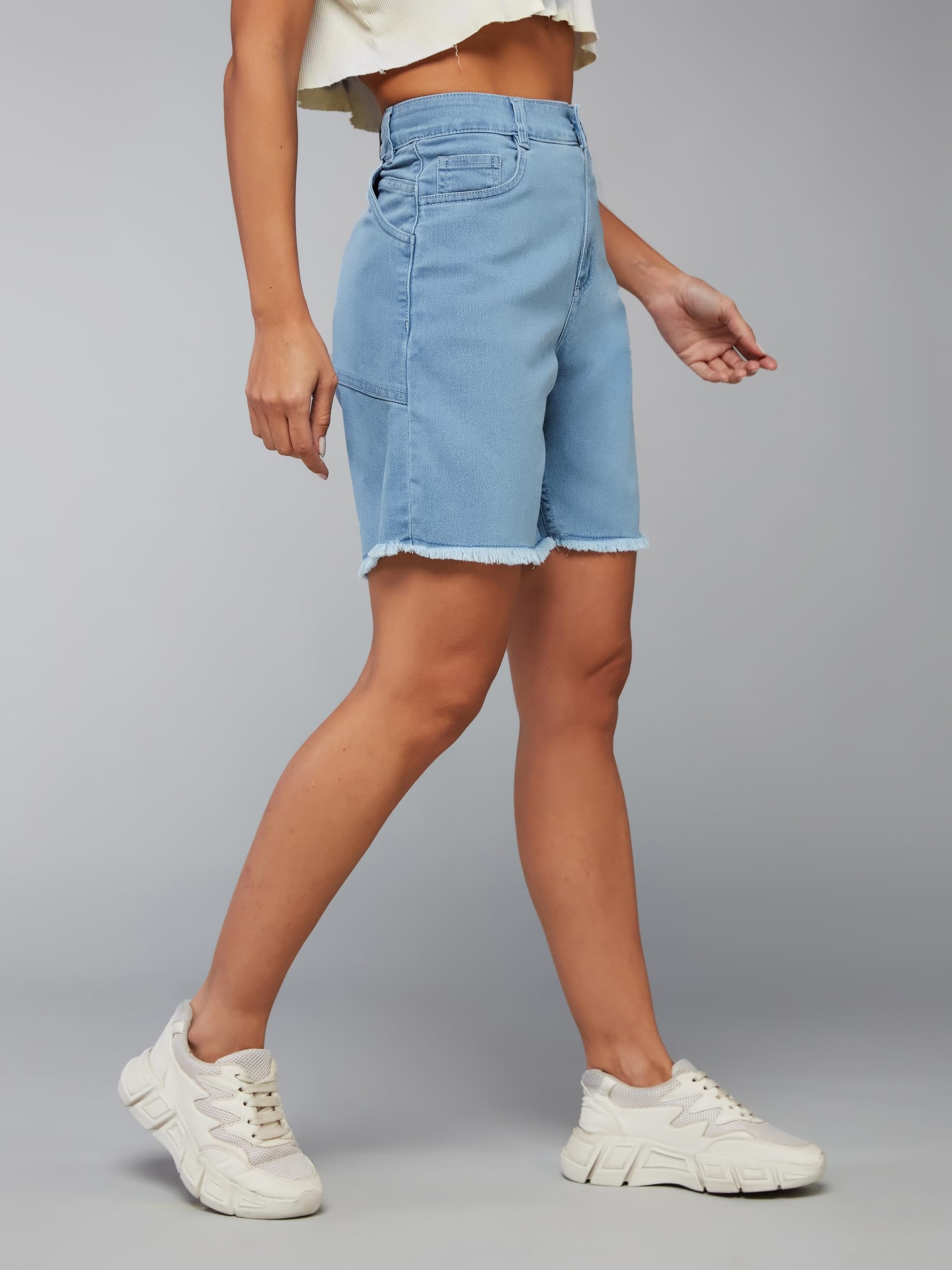 Dolce Crudo Women's Regular High Rise Above Knee Stretchable Denim Shorts (DOSS23DEN09-12-158-28, Light Blue, 28)