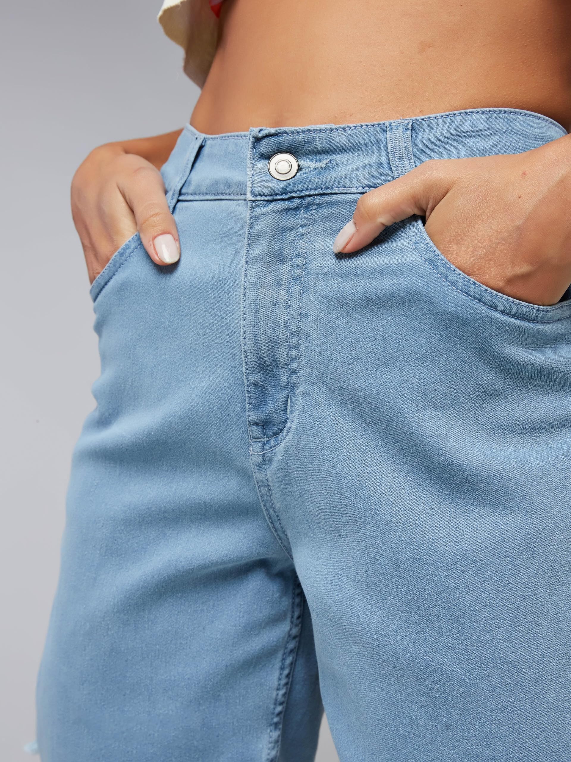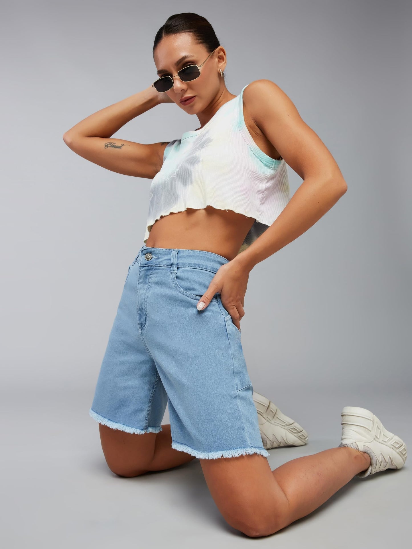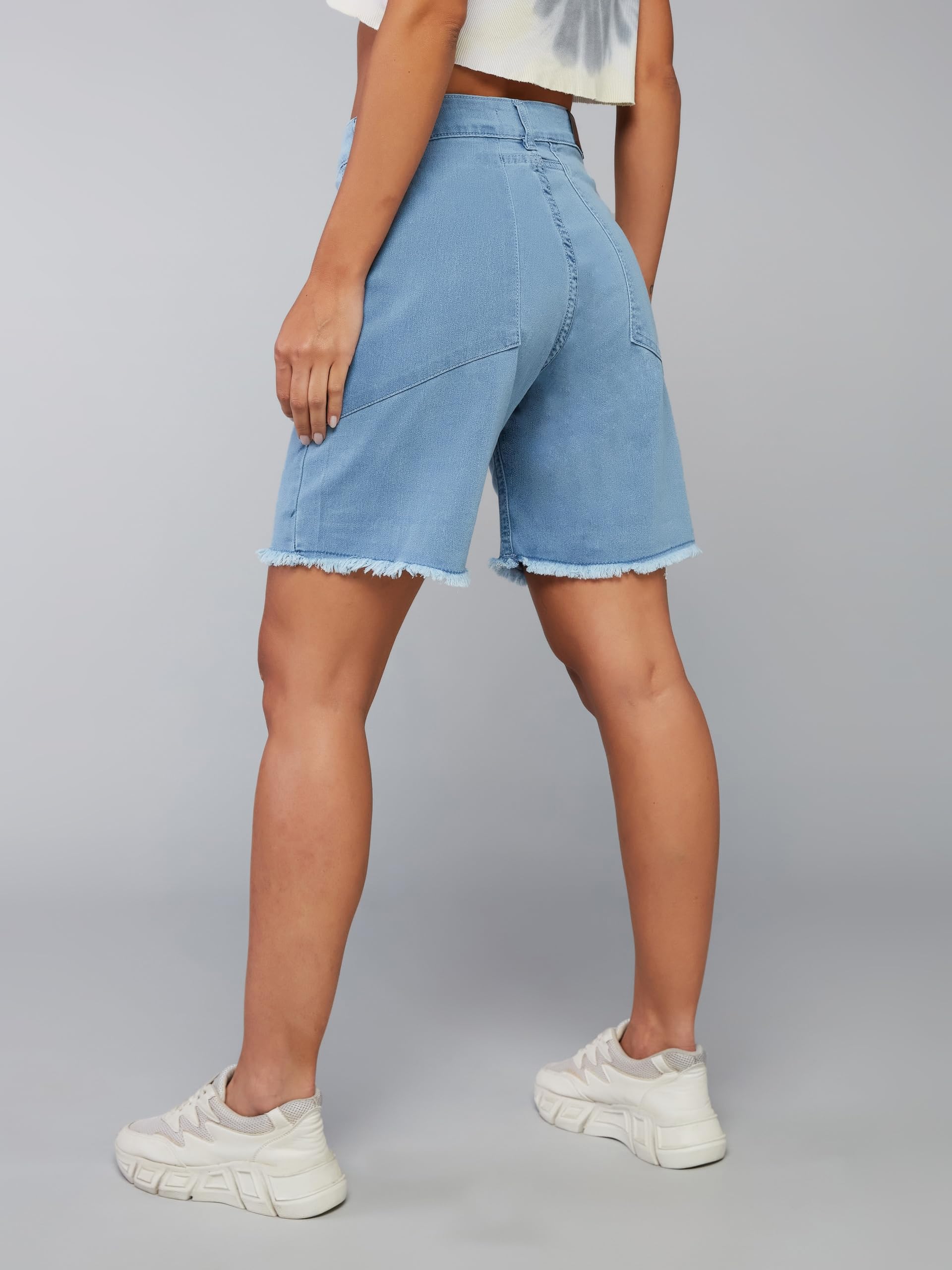 Dolce Crudo Women's Regular High Rise Above Knee Stretchable Denim Shorts (DOSS23DEN09-12-158-28, Light Blue, 28)