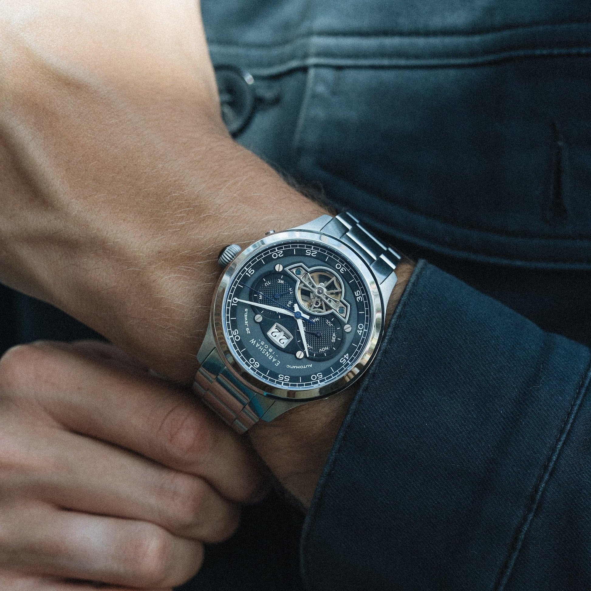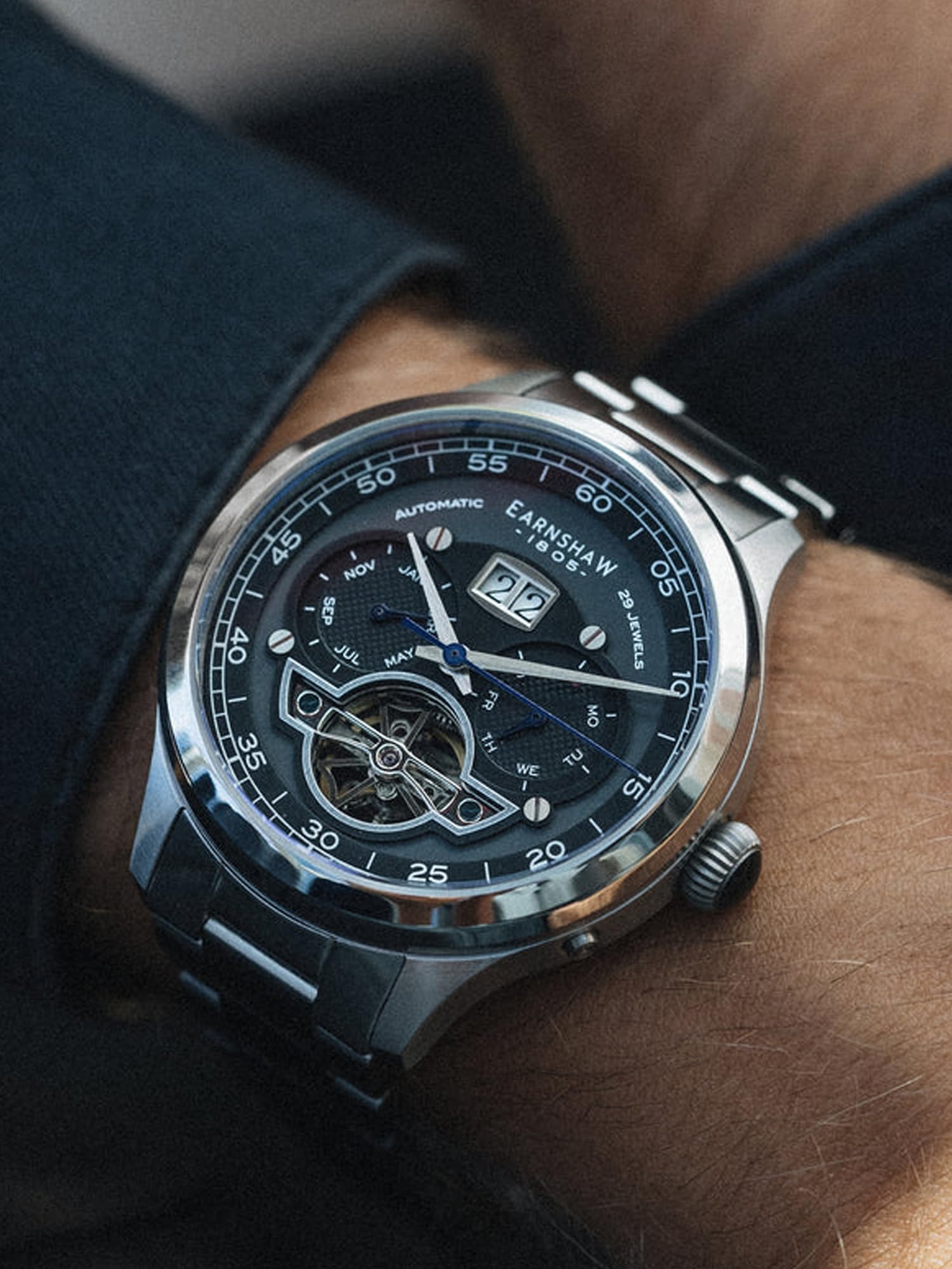 Earnshaw Baron Automatic Black Round Dial Men's Watch - ES-8187-11