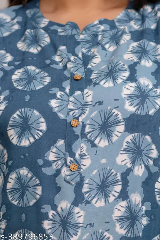 Rayon All sizes comfortable Rayon Blue Short kurti is printed with latest trend which will keep you in pleasant mood in summer time. It looks stunning every time you match it with accessories. The colour is very beautiful which will give a rich sense and style to you.