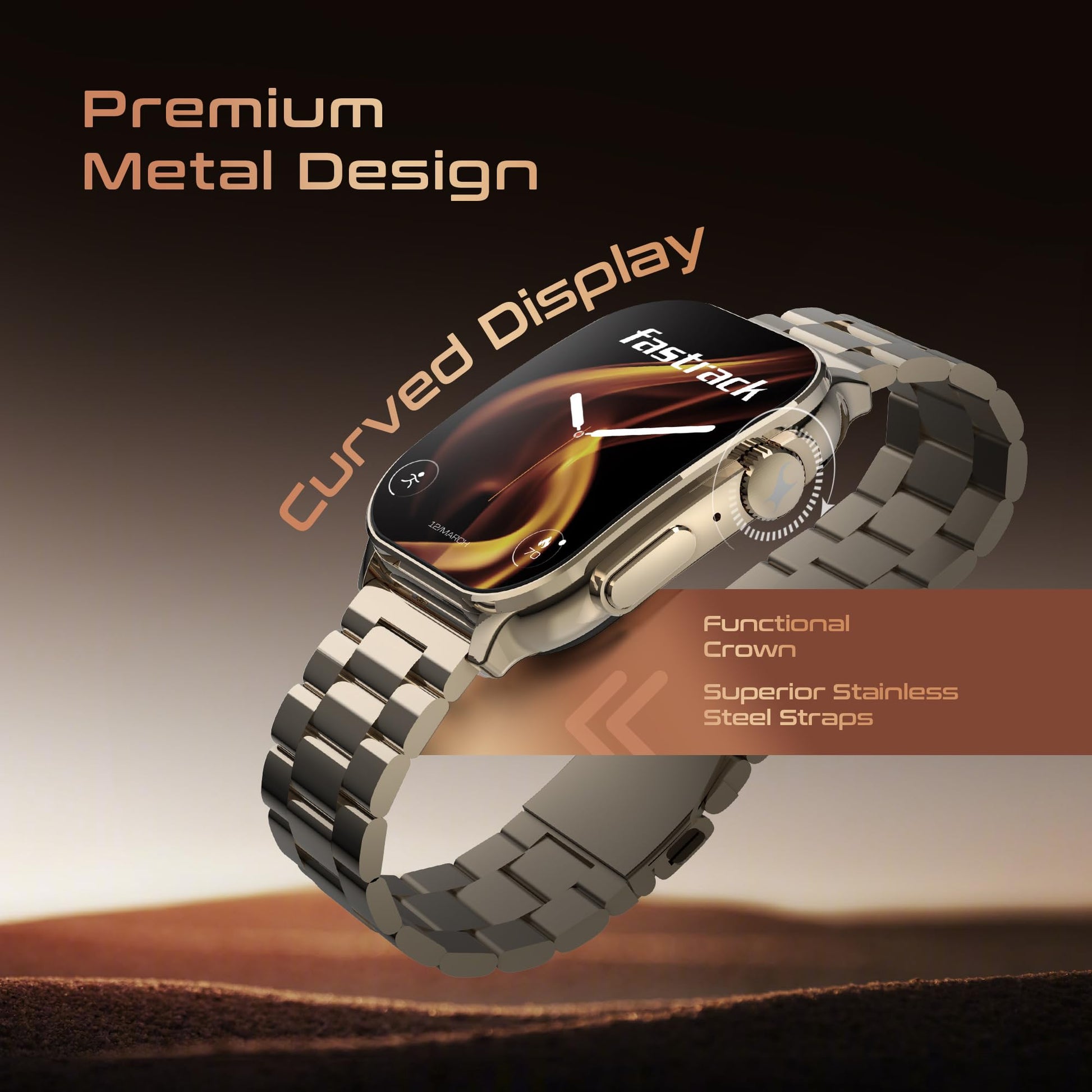 Details: Fastrack Astor FS2 Pro with 1.96" AMOLED Display with 410*502 Pixel Resolution , where we provide your handy kit right on your wrist with SingleSync BT Calling, Functional Crown,Multisport Tracker, 100+ Cloud Watchfaces, IP68 Water Resistance, Up to 5 day battery, Health Monitoring. We got your health covered with deep personalized insights in our Fastrack Smart World App.