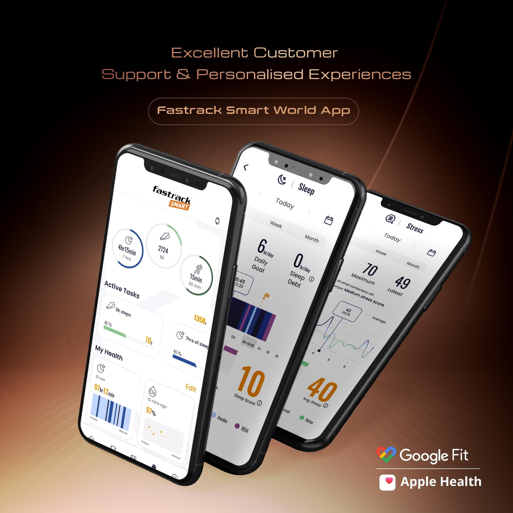- Health Monitoring with Stress monitor, 24x7 HRM, SPO2