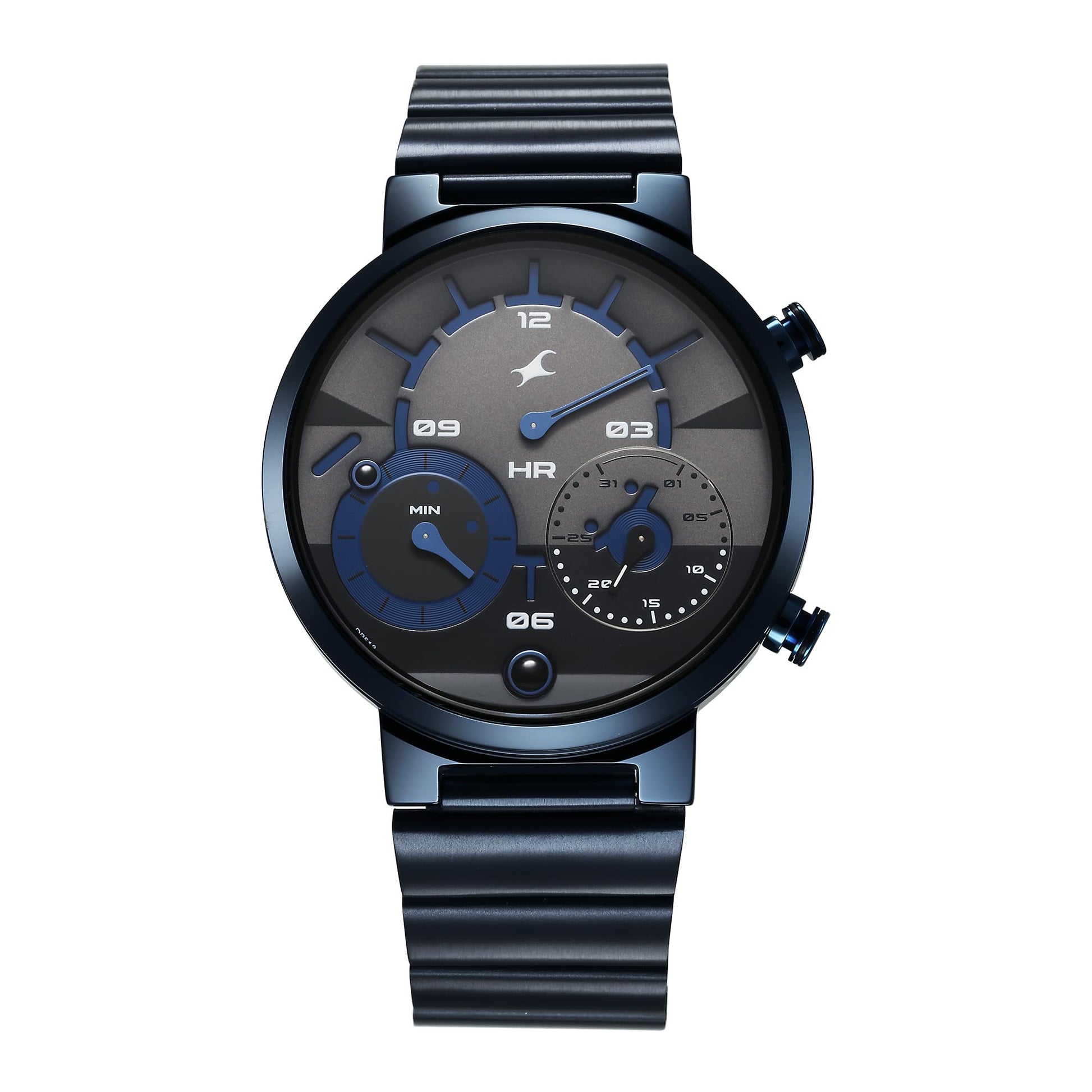 Fastrack Gambit Quartz Analog Dark Grey and Blue Dial with IP Micro Ion Blue Stainless Steel Strap Watch for Men