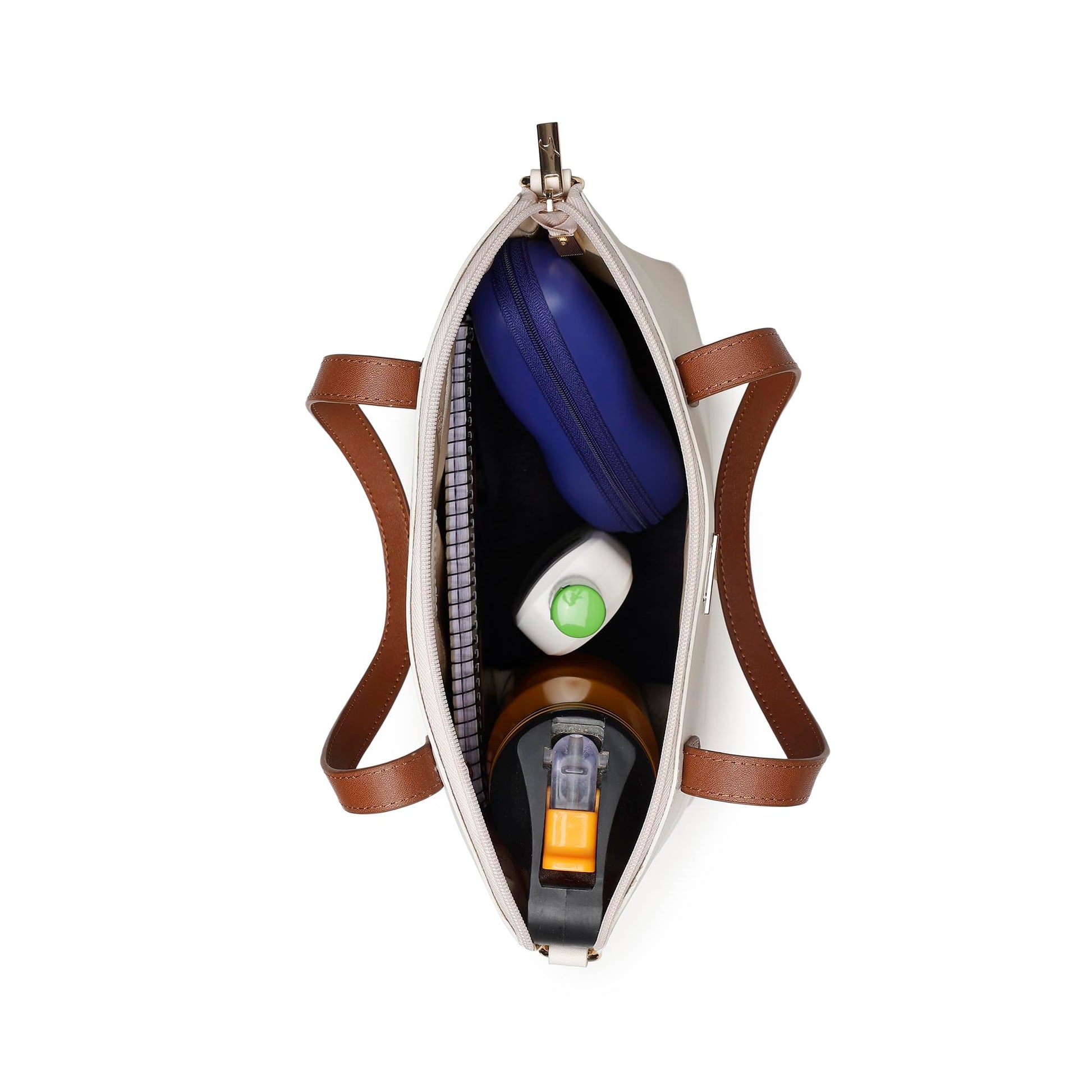 - Sleek white-and-tan satchel with a modern, minimal vibe.