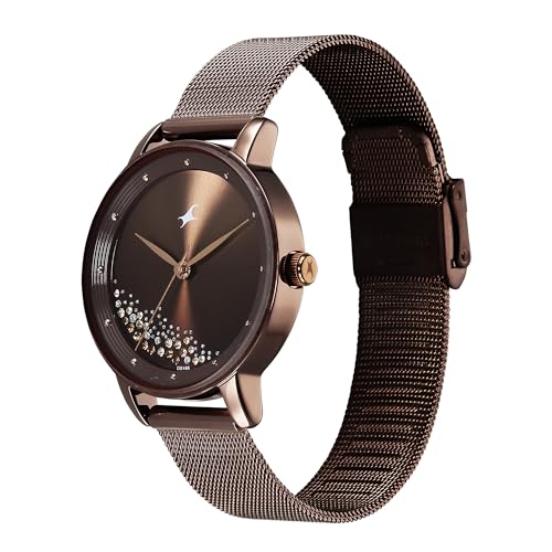 Fastrack Style up 5 Quartz Brown Round Dial Girl's Watch | Stainless Steel Strap Material | Watches for Girls Analog - 6206QM01