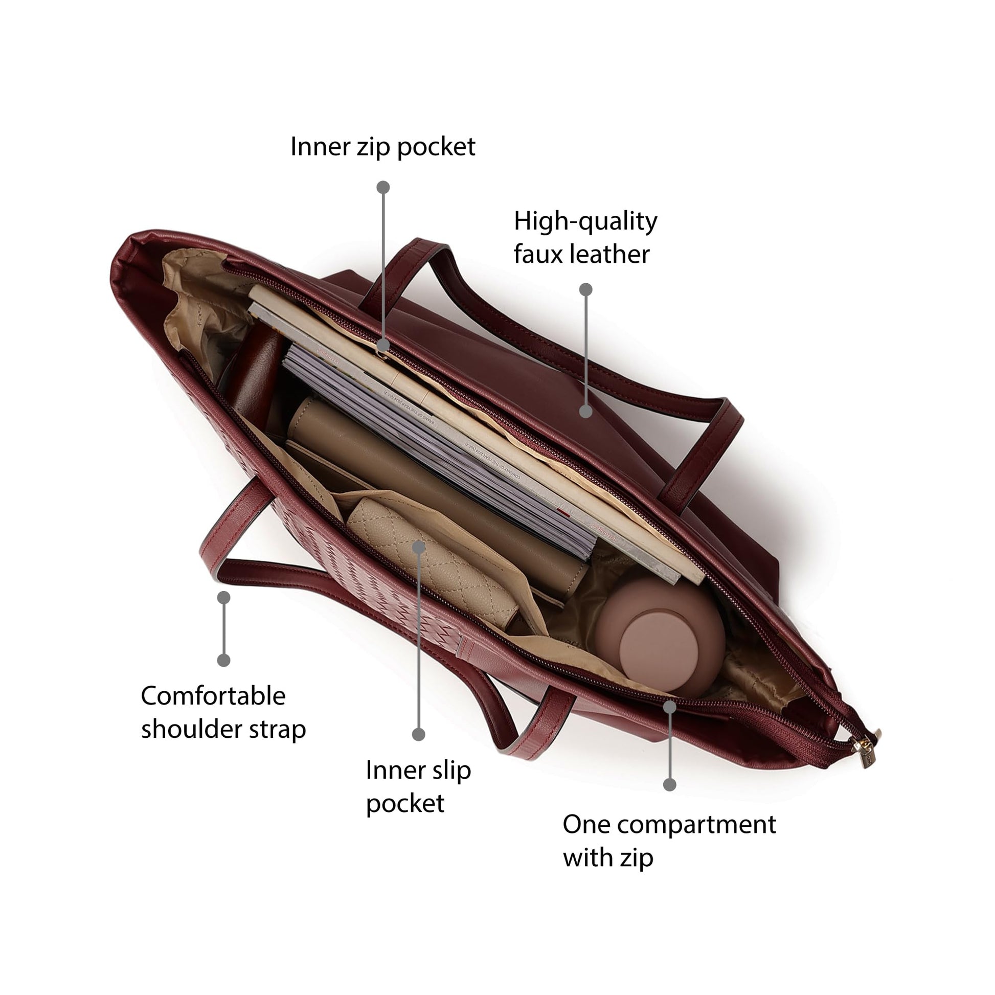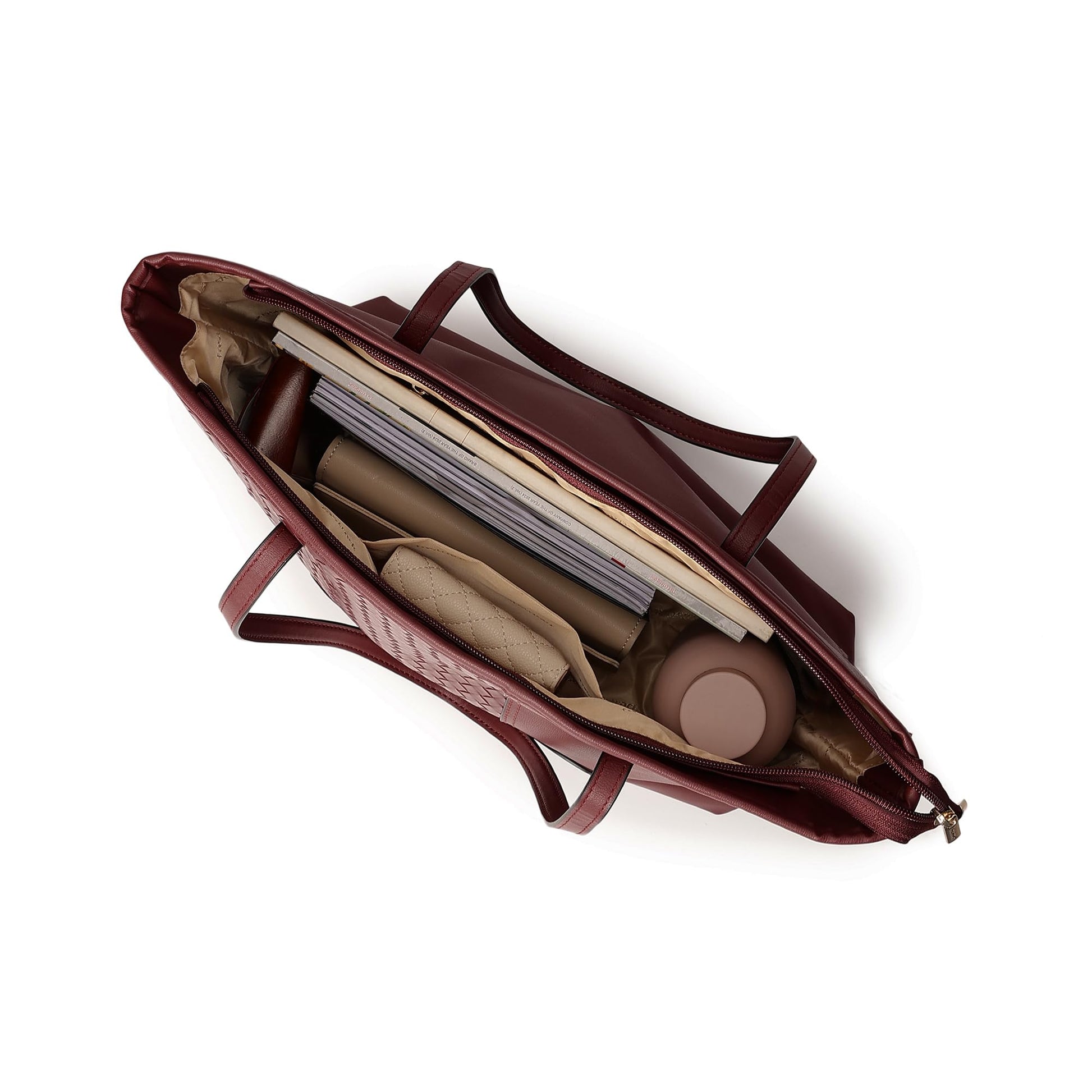 Fastrack Textured Quilted Weaving Tote Bag For Women | Fits Upto 15" Laptop | Trendy Faux Leather Tote With Zip Closure and Comfy Shoulder Straps | Spacious Handbag With Inner Pockets