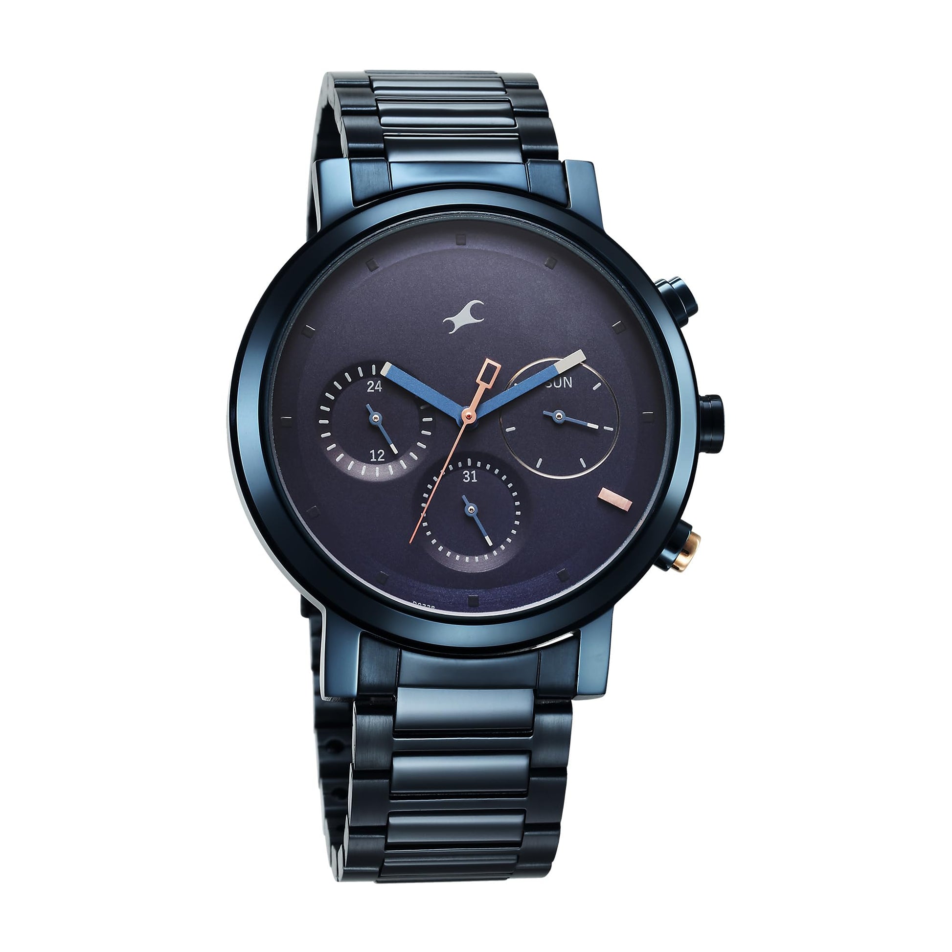 Fastrack Tick Tock Quartz Analog Blue Dial with Blue Stainless Steel Strap Watch for Guys-3287KM08