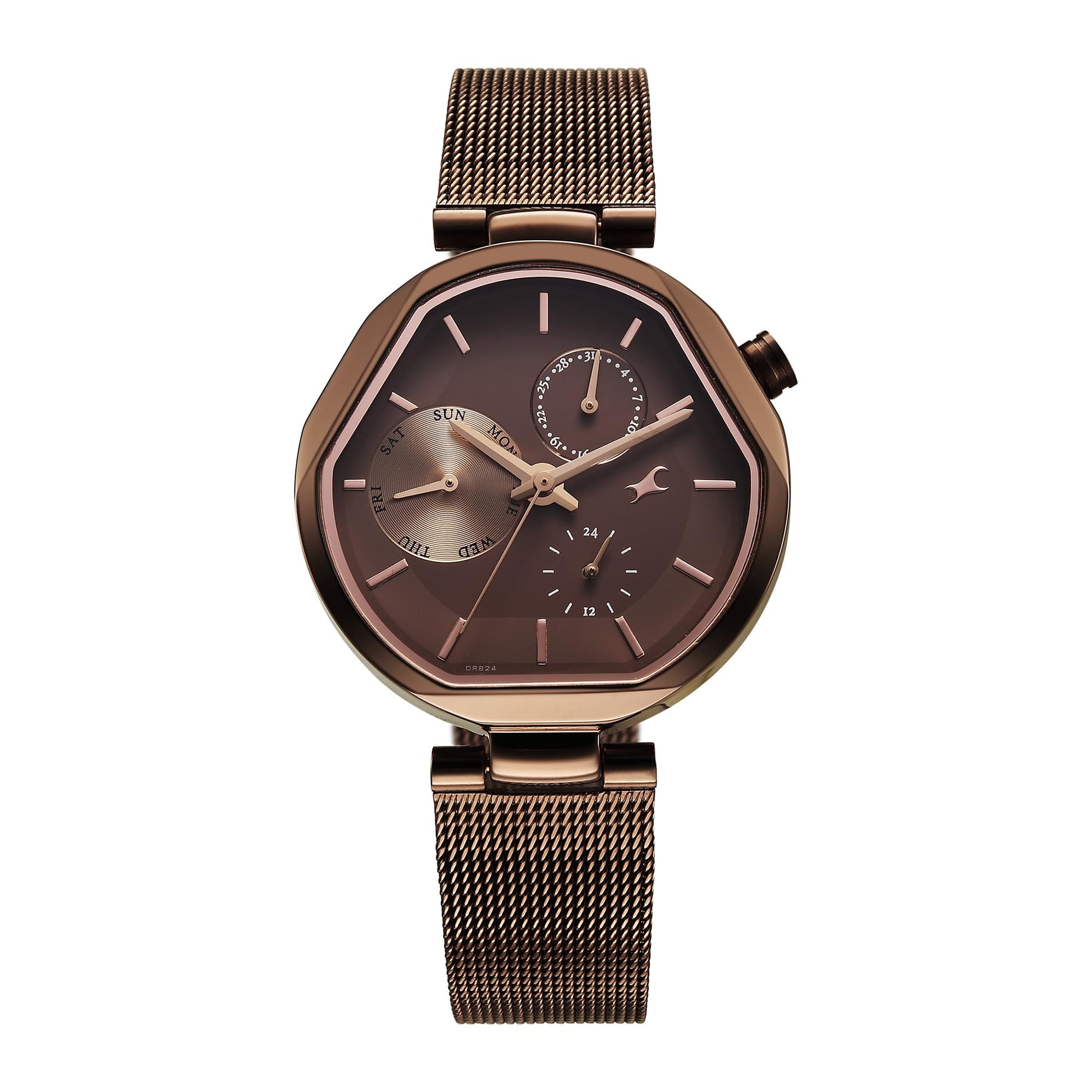 Fastrack TIK Tok 5.0 Quartz Brown Shaped Dial Women's Watch | Stainless Steel Strap Material | Watches for Women Analog - 6319QM01