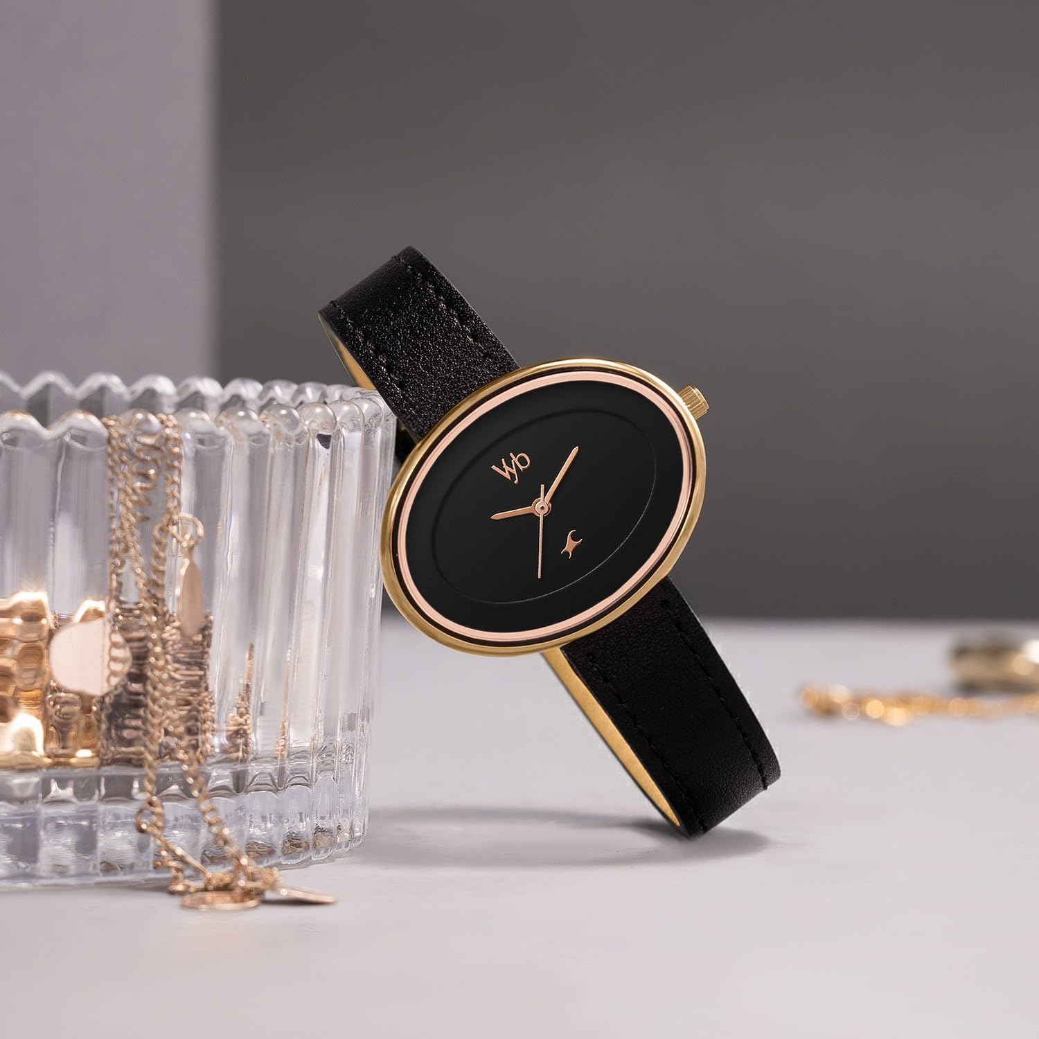 Fastrack Vyb Mirage Quartz Analog Black Dial Black Split Leather Strap Watch for Women - FV60103WL01W
