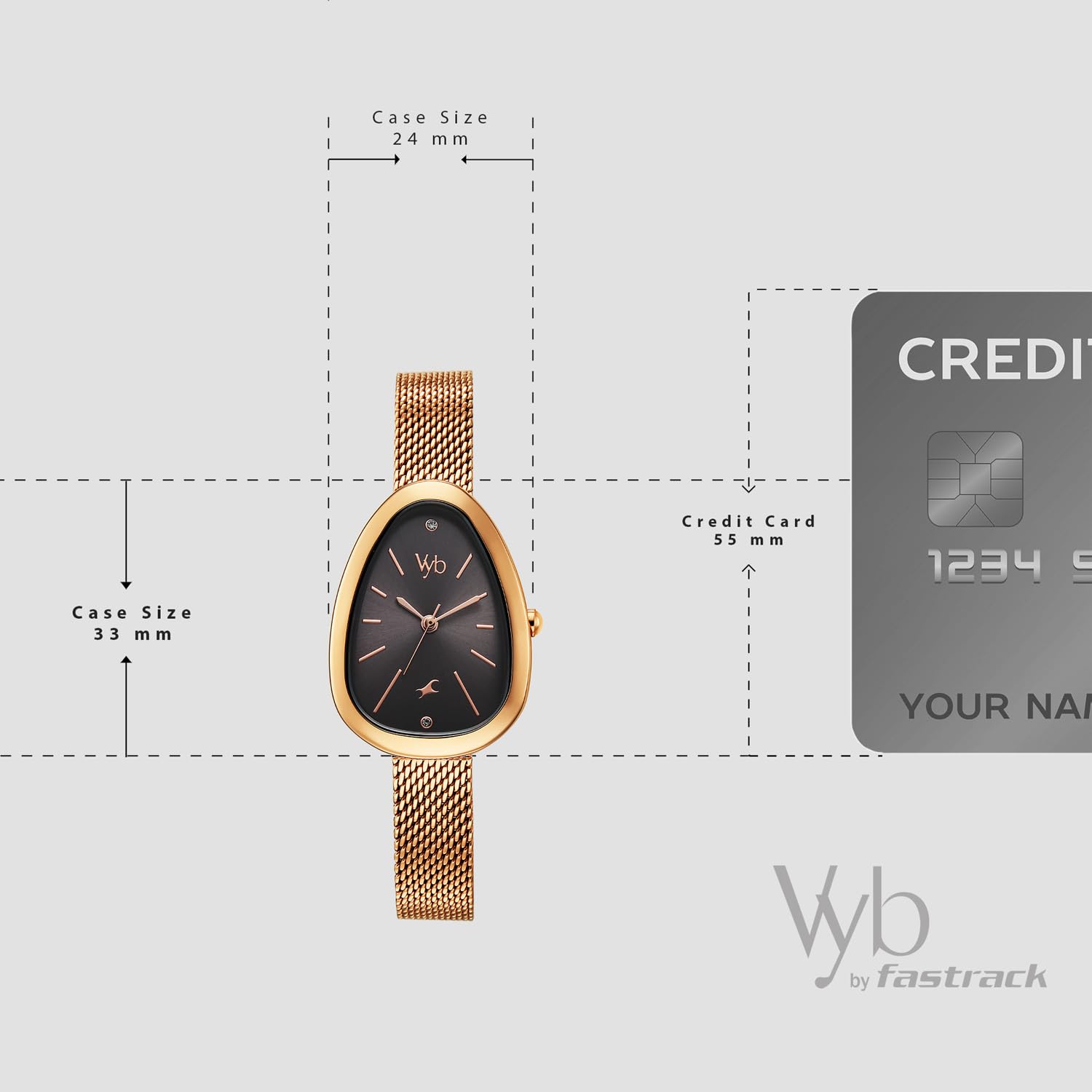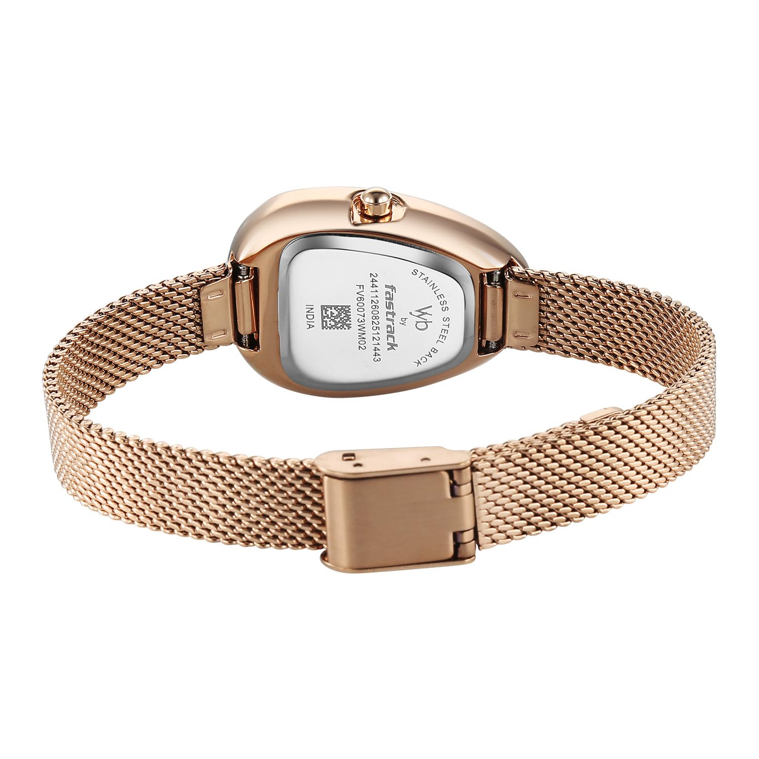 Fastrack Vyb Prodigy Quartz Analog Grey Dial Rose Gold Stainless Steel Strap Watch for Women - FV60073WM02W