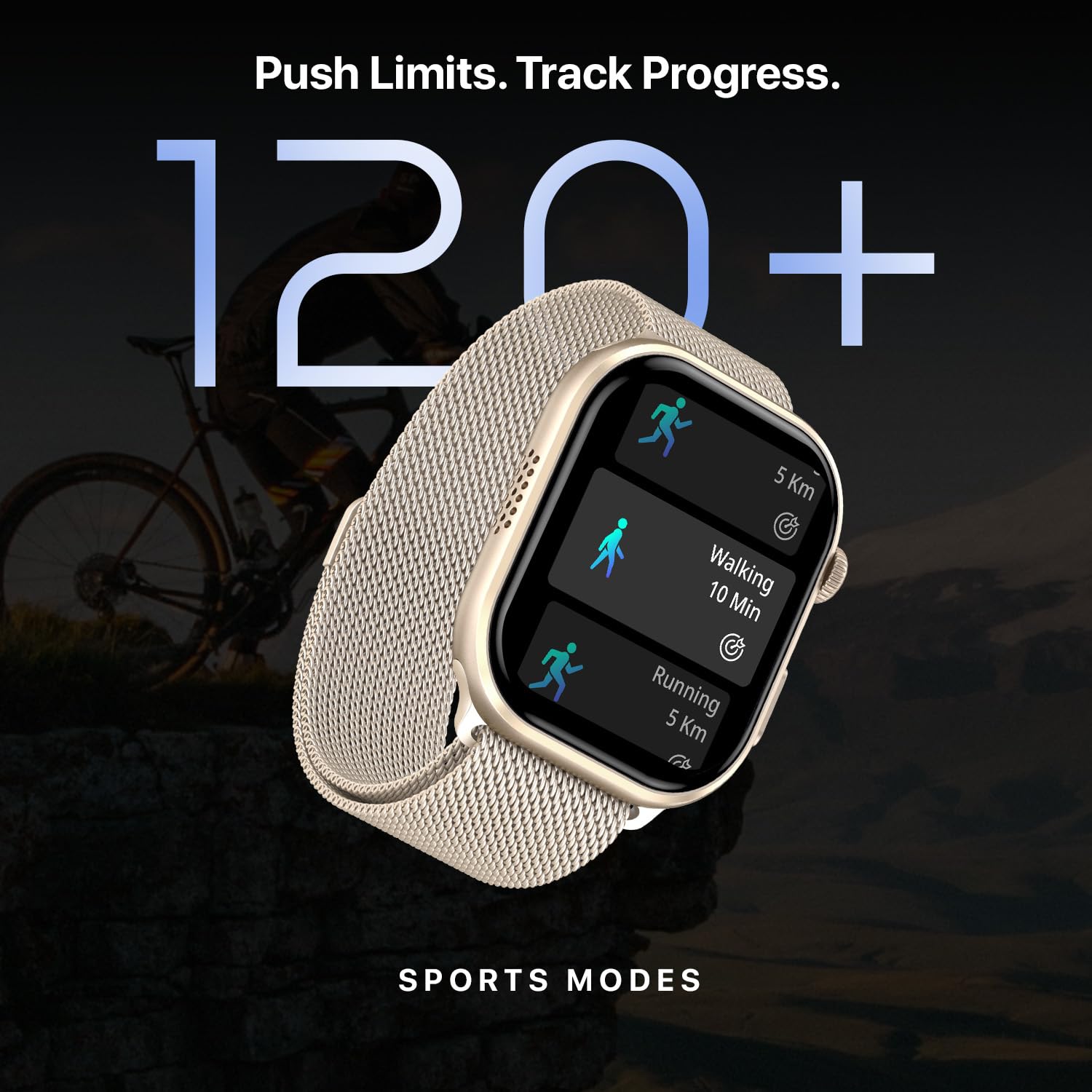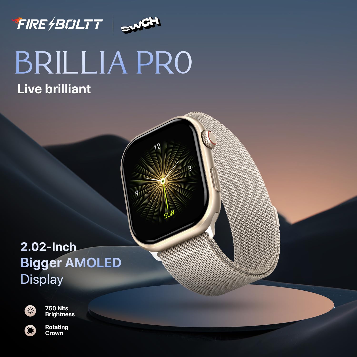 Fire-Boltt Brillia Pro Smart Watch with 51.3mm (2.02 inch) AMOLED Display, Bluetooth Calling, SpO2, Heart Rate Monitoring, 120+ Sports Modes, IP67 Waterproof, Long Battery Life (Champagne)