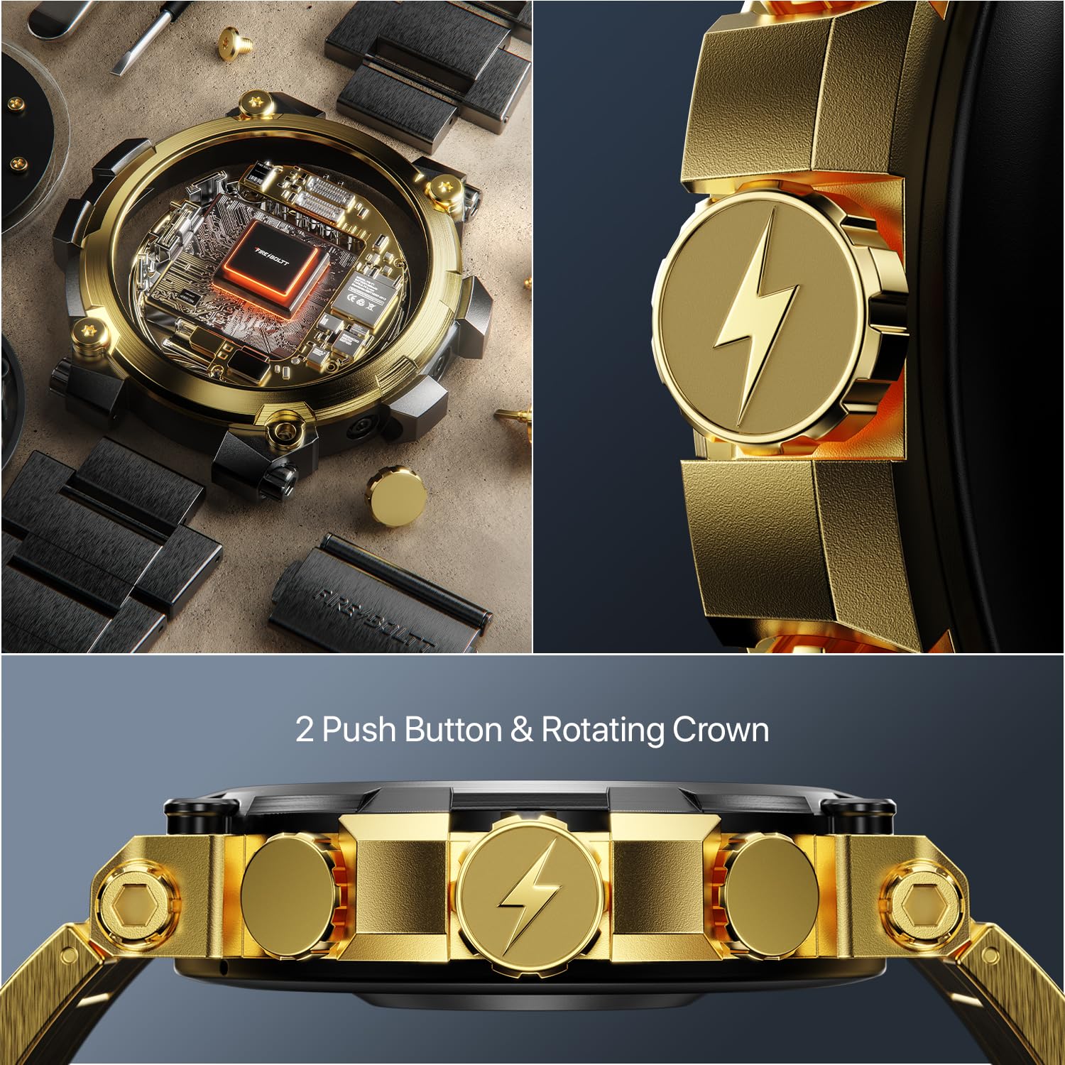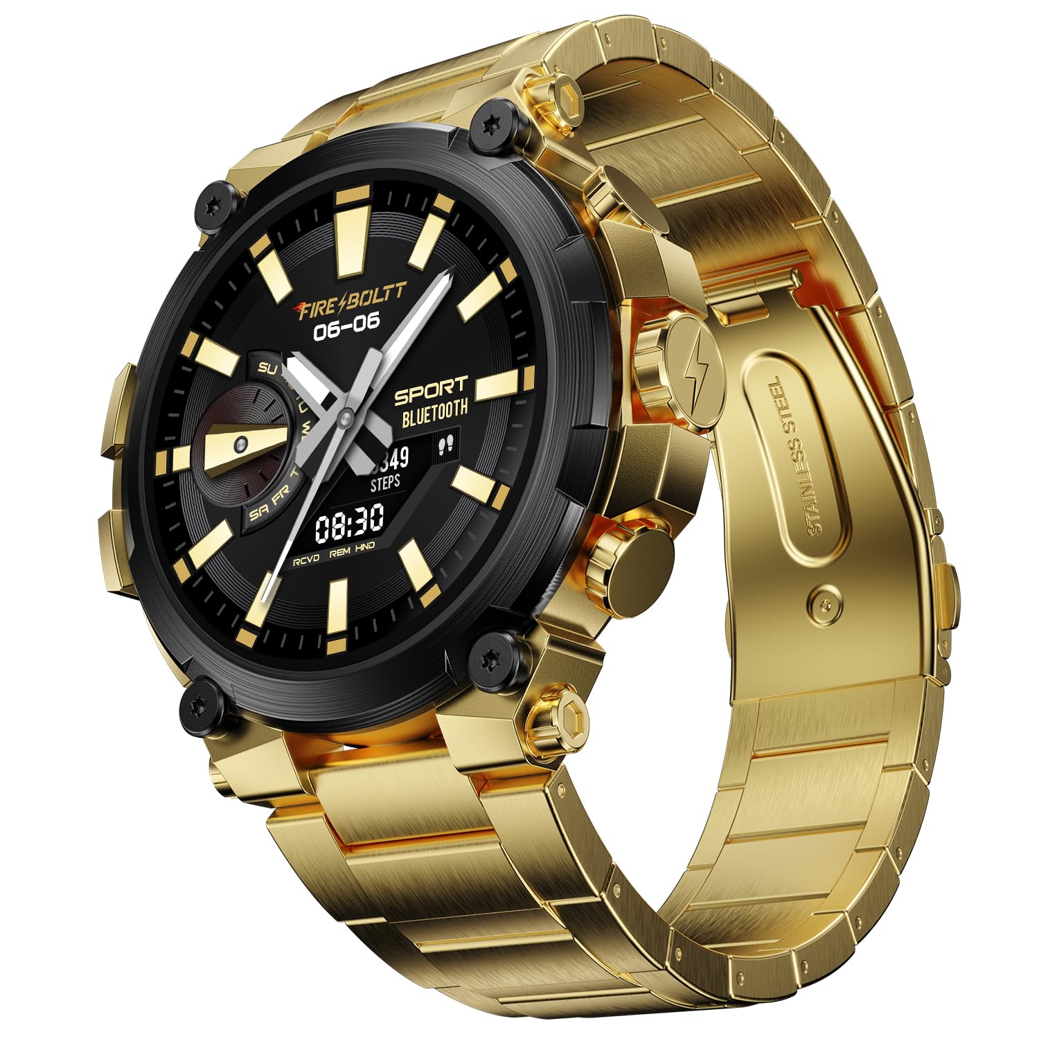 Fire-Boltt Dominian 36.3mm (1.43 inch) AMOLED Display, Stainless Steel Design, 466 * 466 px Resolution, Bluetooth Calling, Multiple Sports Modes, Health Mode, IP67, Weather Updates (Golld Black)