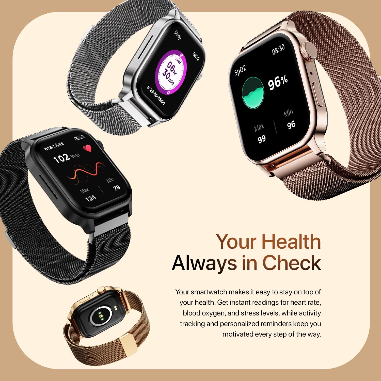 - 【Premium Metal Milanese Strap for a Luxurious Look】 – Elevate your style with the sleek and durable Milanese metal strap, offering a comfortable fit, magnetic closure, and a premium finish. Designed for both formal and casual wear, this Fire-Boltt smartwatch seamlessly blends fashion with functionality.