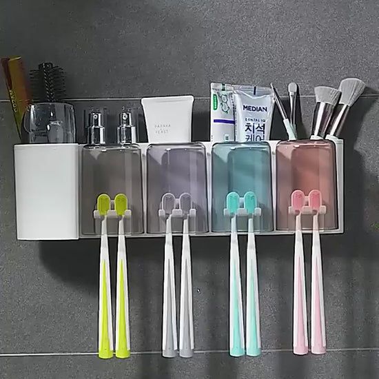 - Product Name - Foreign Holics Self-Adhesive Plastic Toothbrush Holder with Cover for Bathroom, 5-Slot Wall Mounted Toothbrush Organizer