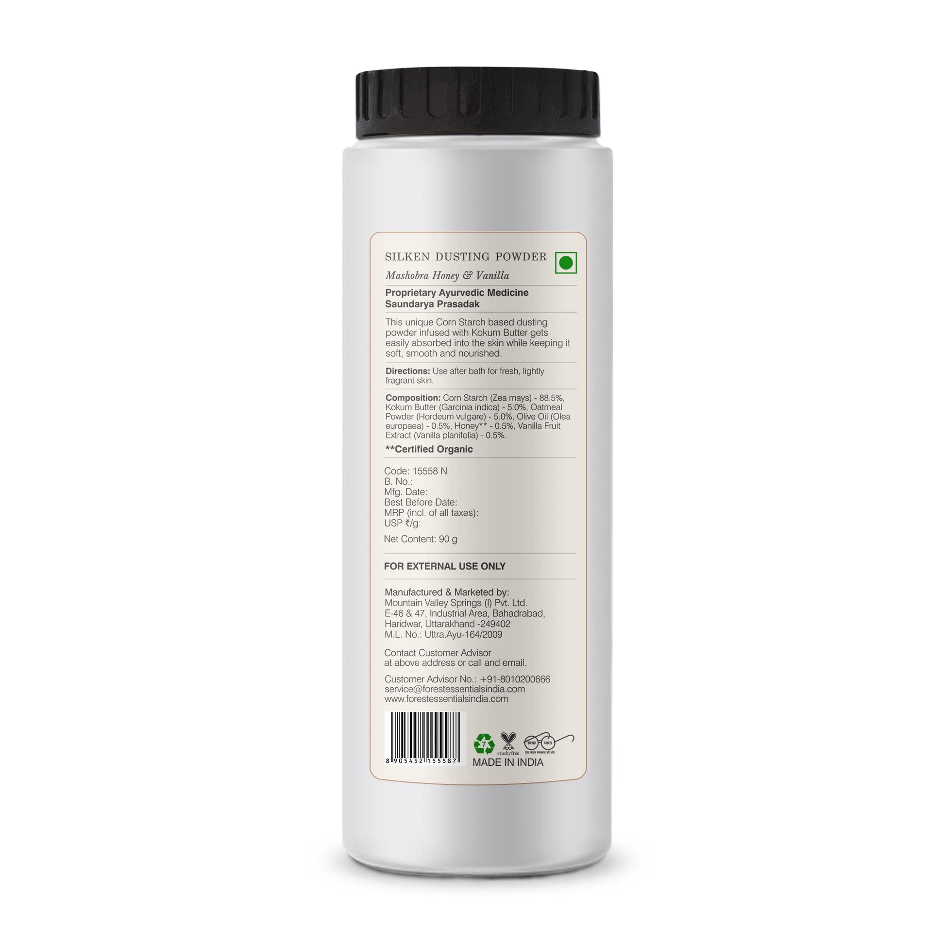 Forest Essentials Silken Dusting Powder Mashobra Honey & Vanilla | Natural Talc Free Powder with Vanilla & Honey| Highly Absorbent & Refreshing