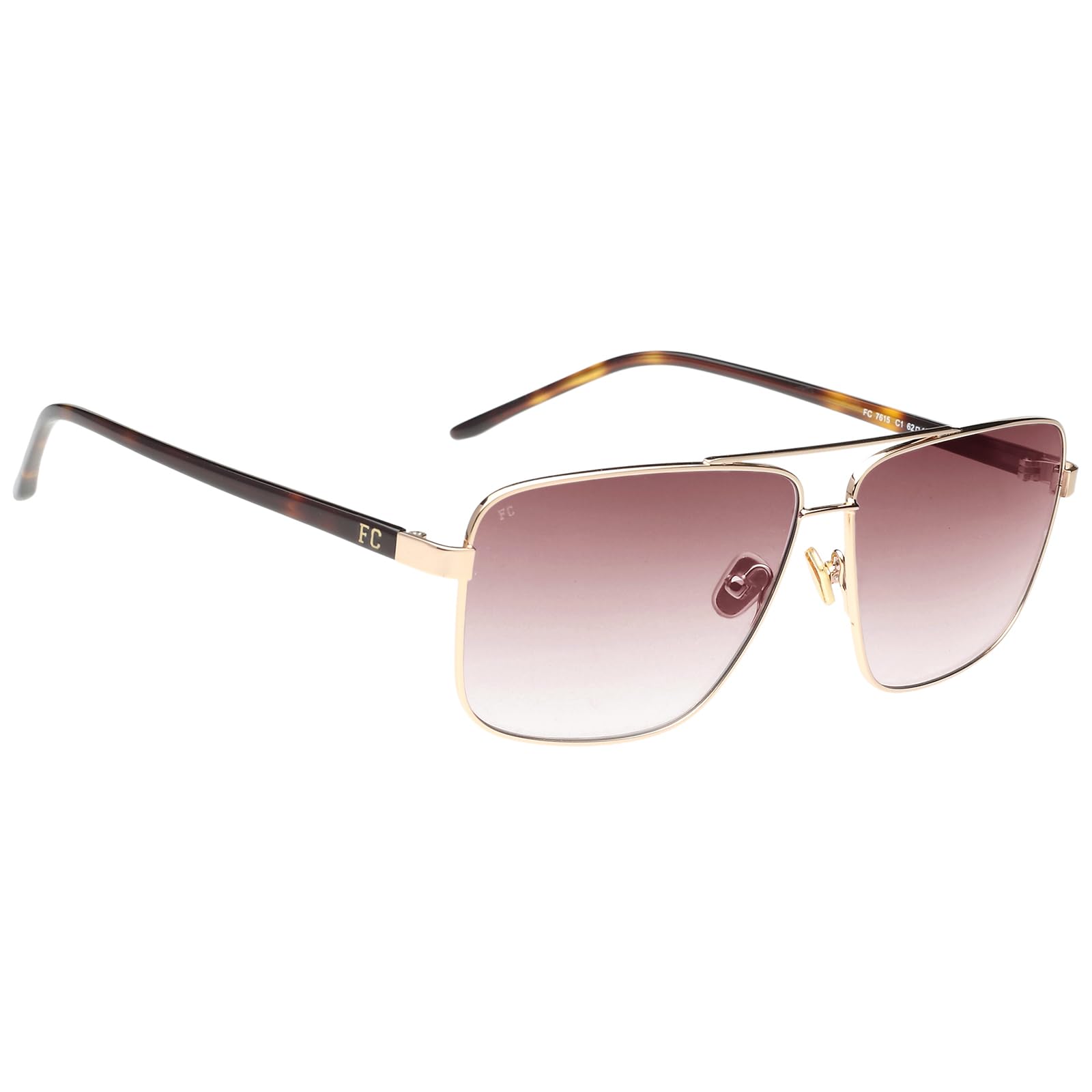 French Connection|Gold Full Frame Square Sunglasses|100% UV Protected (Uv 400) Brown Gradient Faded Lens|Men's|Large|FC 7615 C1 62 S