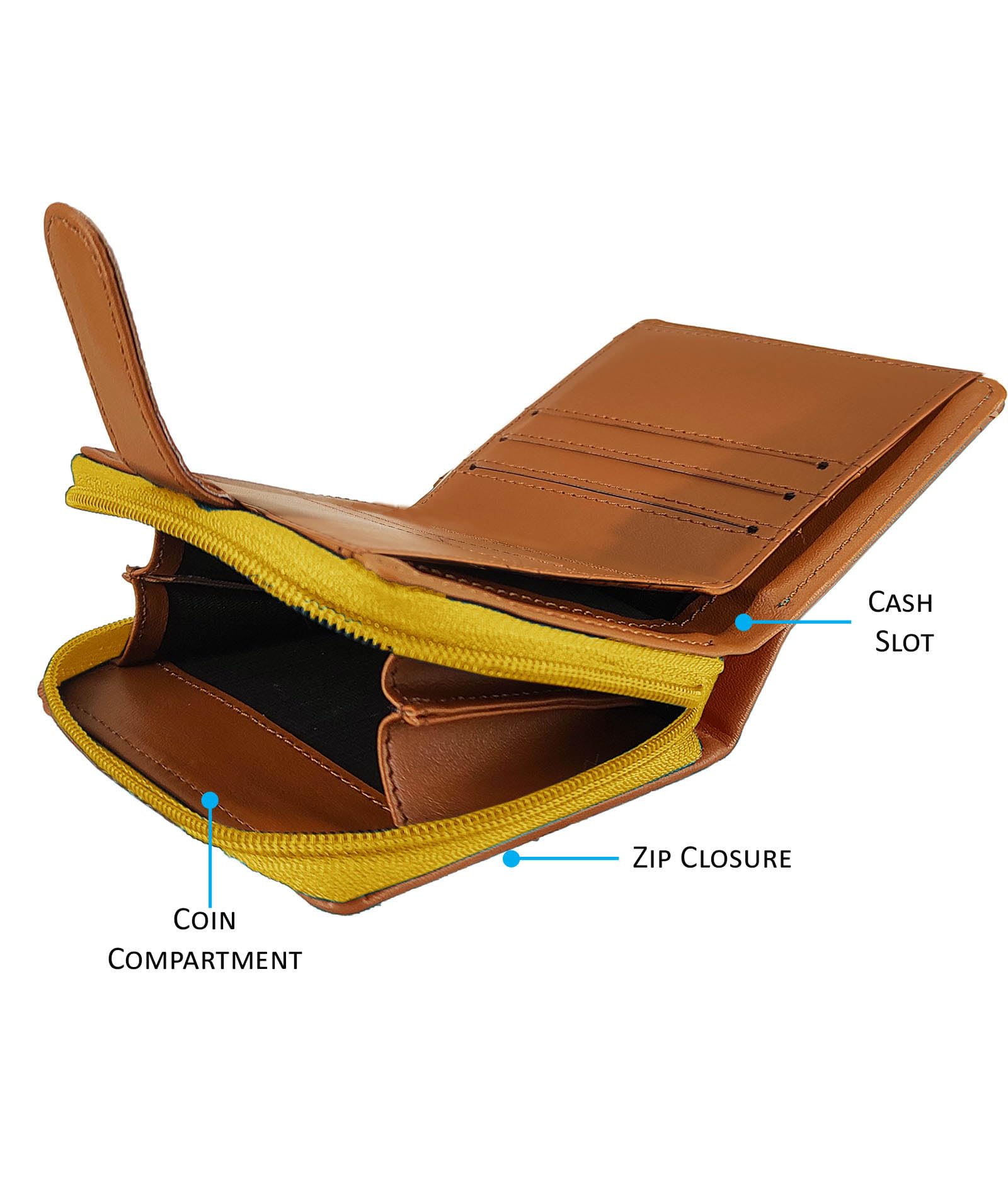 • Features 6 secure card slots, a spacious cash compartment with magnetic button closure designed to fit Indian currency, and a separate zippered coin pouch for organized storage of coins and small essentials.