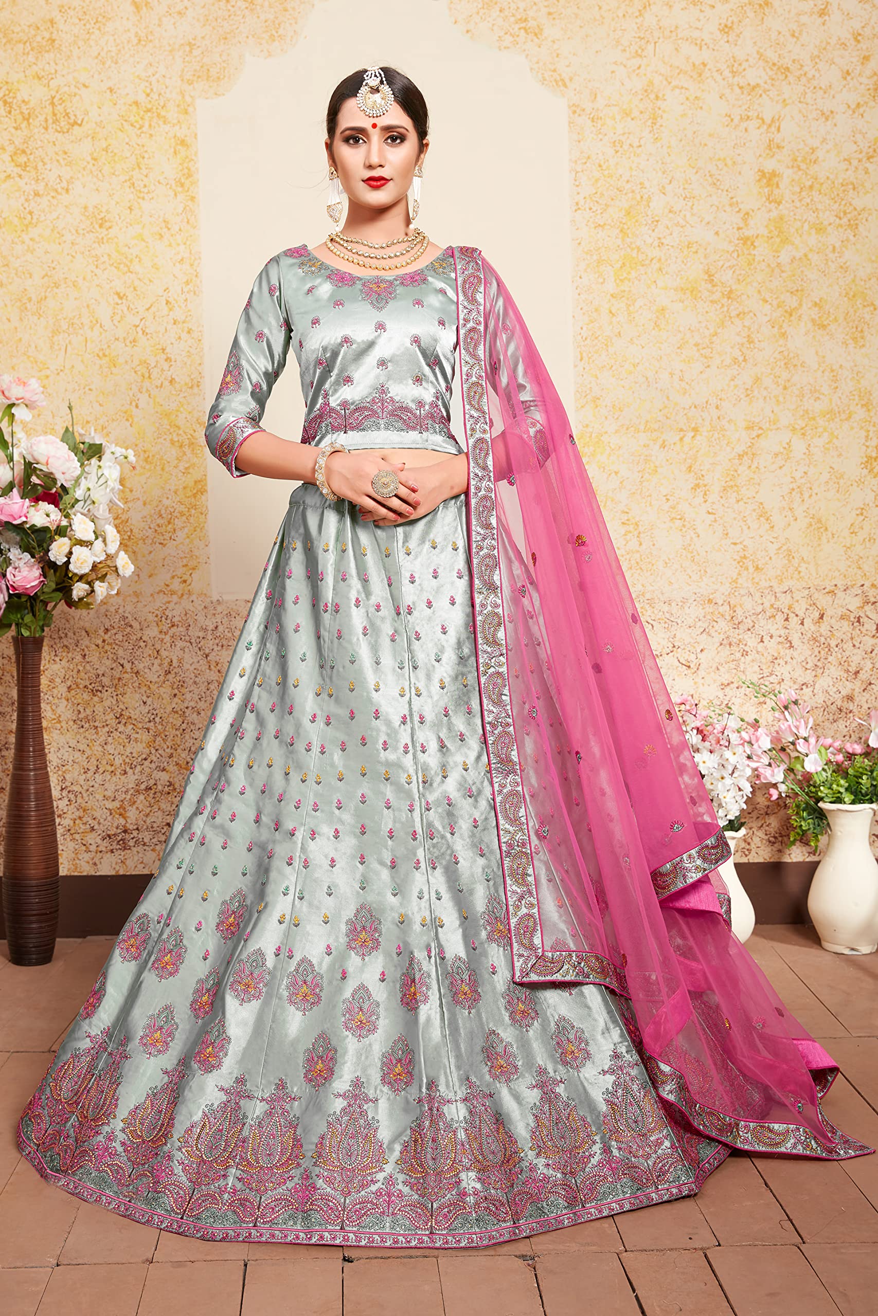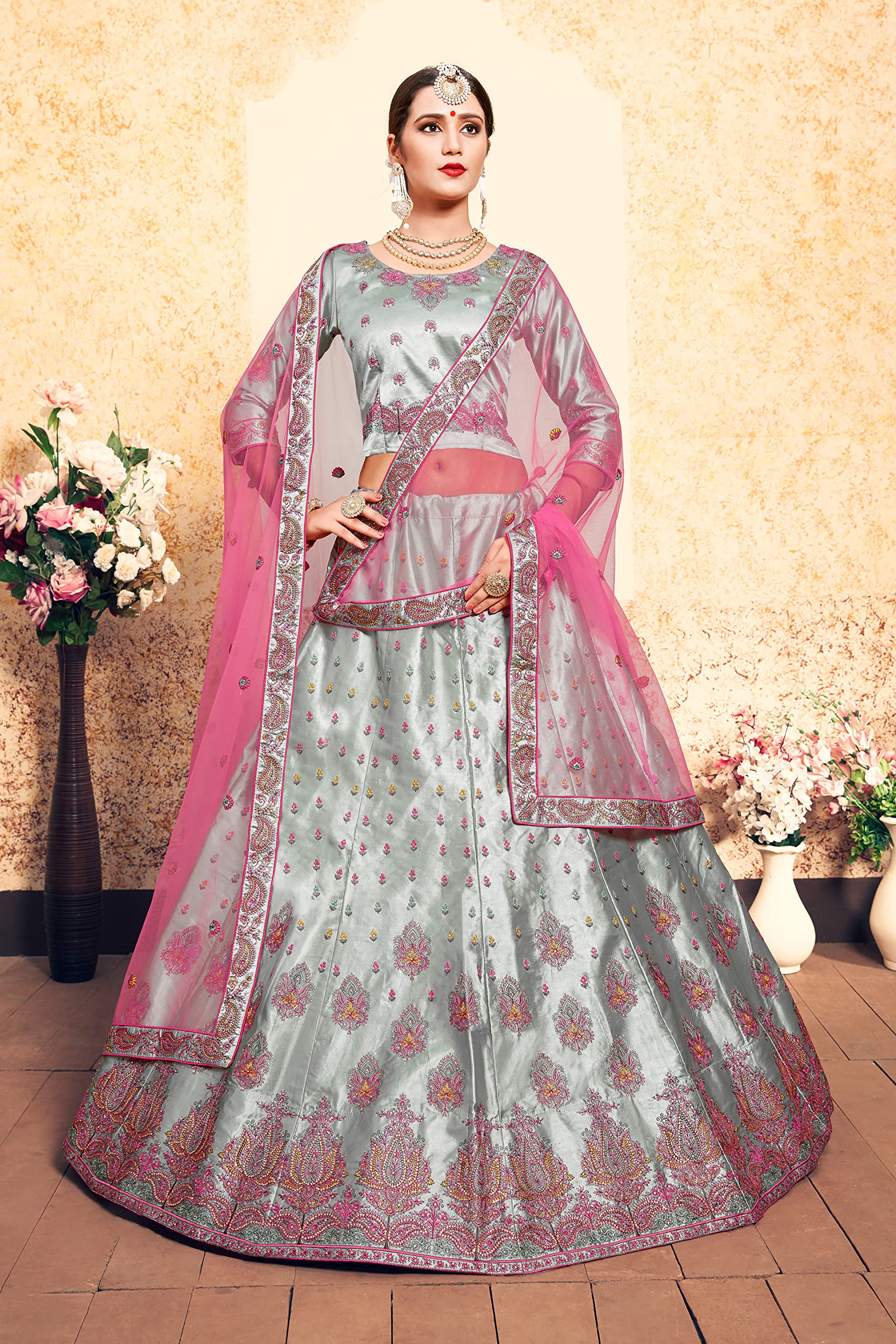FUSIONIC Beautiful Grey colored Soft Net base designer Lehenga Choli For Women