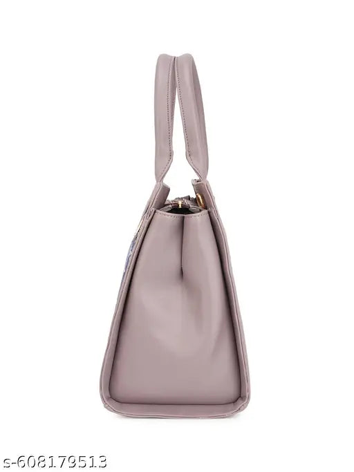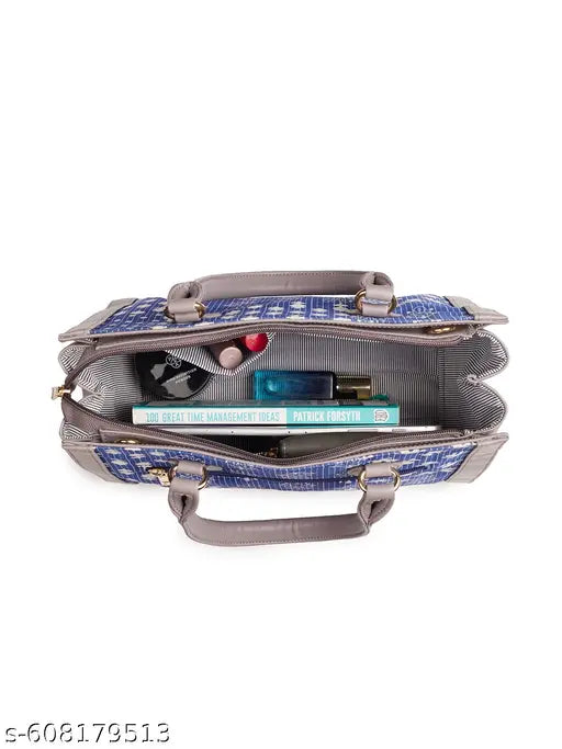 NameGlobus Women Blue Vegan Leather Azrak Floral Print Double Handle Handheld Bag