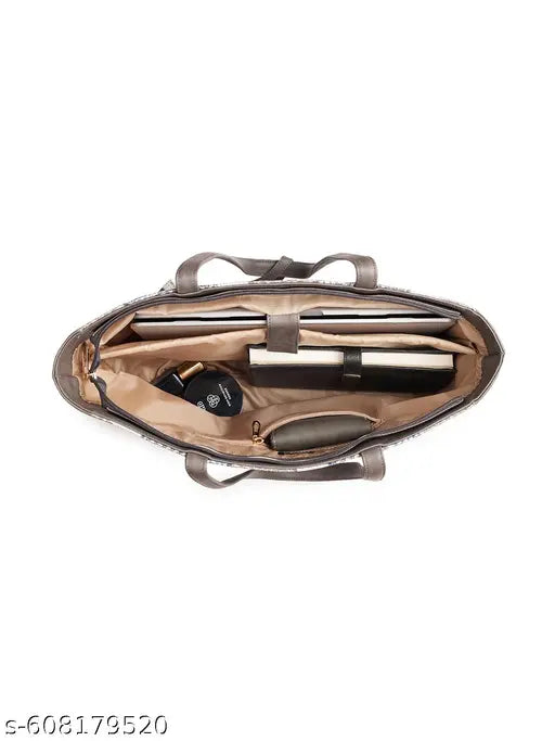 NameGlobus Women Grey Vegan Leather Jute Abstract Print Double Handle Tote Bag With Pouch