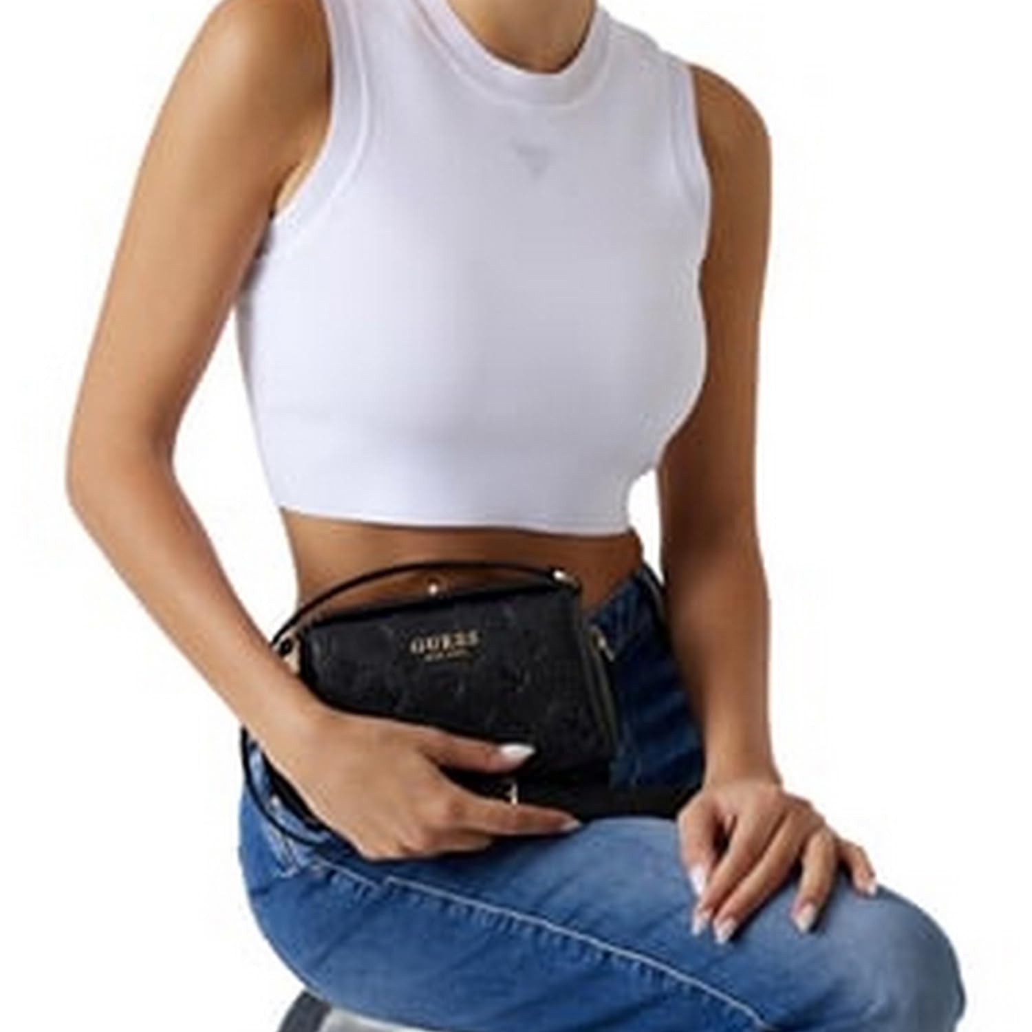 GUESS Women Black Geometric Adjustable Strap Mini Crossbody Bag