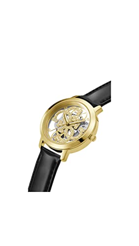 Guess Womens 36 mm Quattro Clear Gold Dial Genuine Leather Analog Watch - GW0383L1