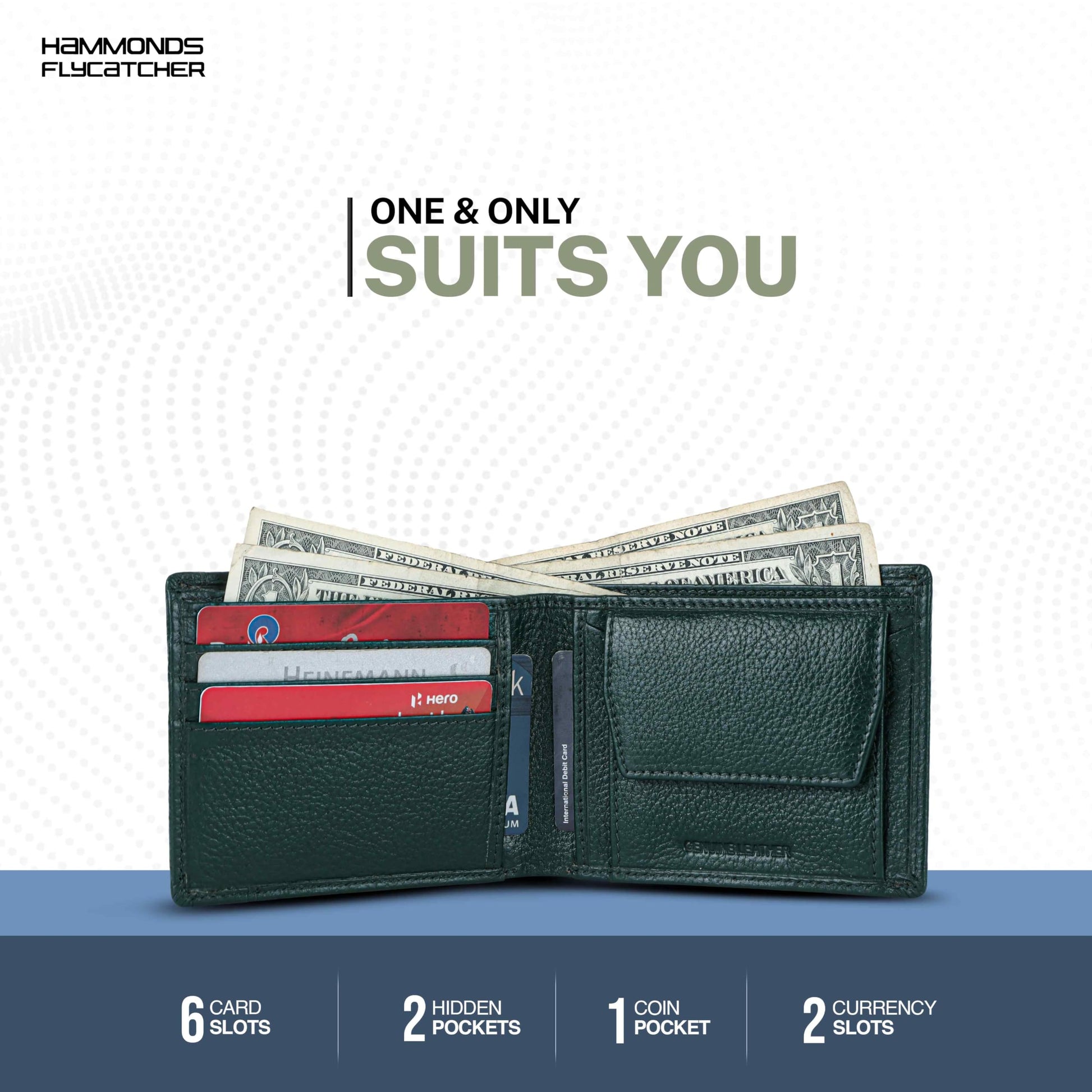HAMMONDS FLYCATCHER Wallet for Men Leather Original, Mens Wallet, Leather Wallets for Men Stylish, Bi-Fold Wallets for Man, 6 Card Slots, Easy Access Card Slots, Coin Pocket, Gift for Mens - Green