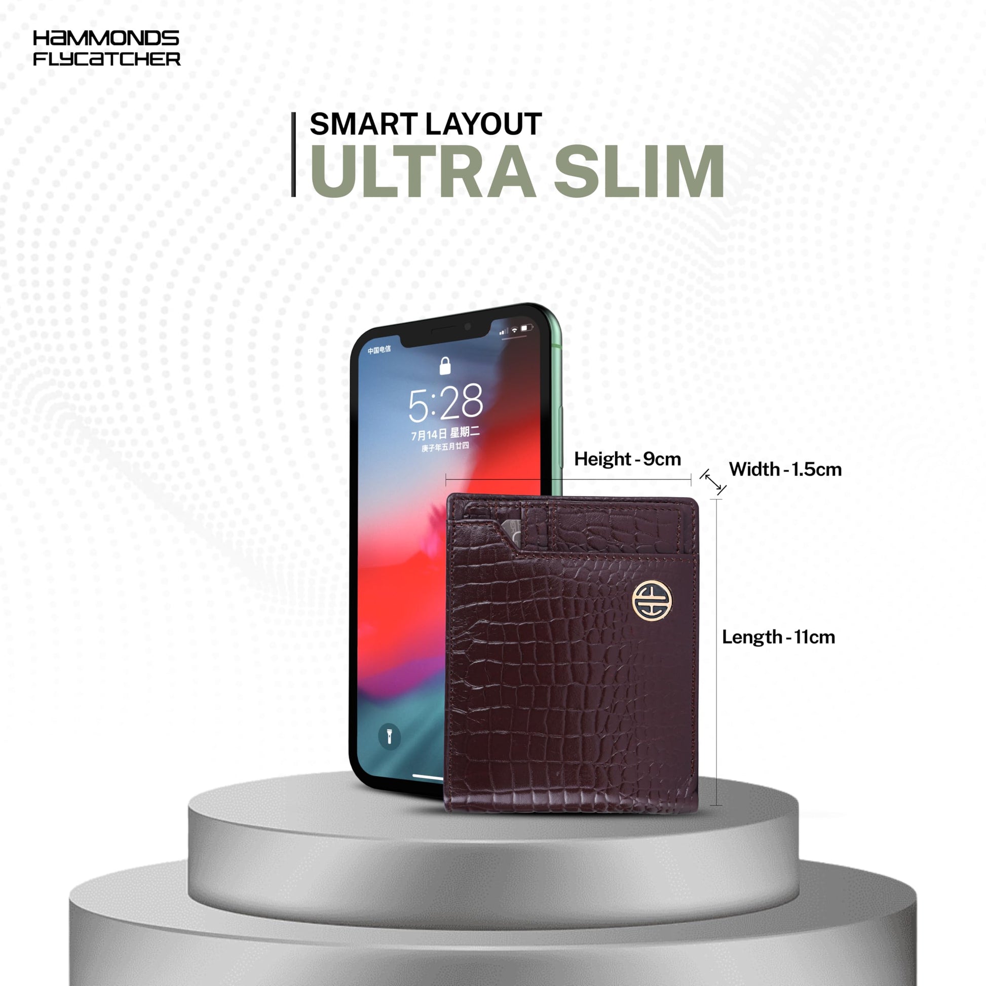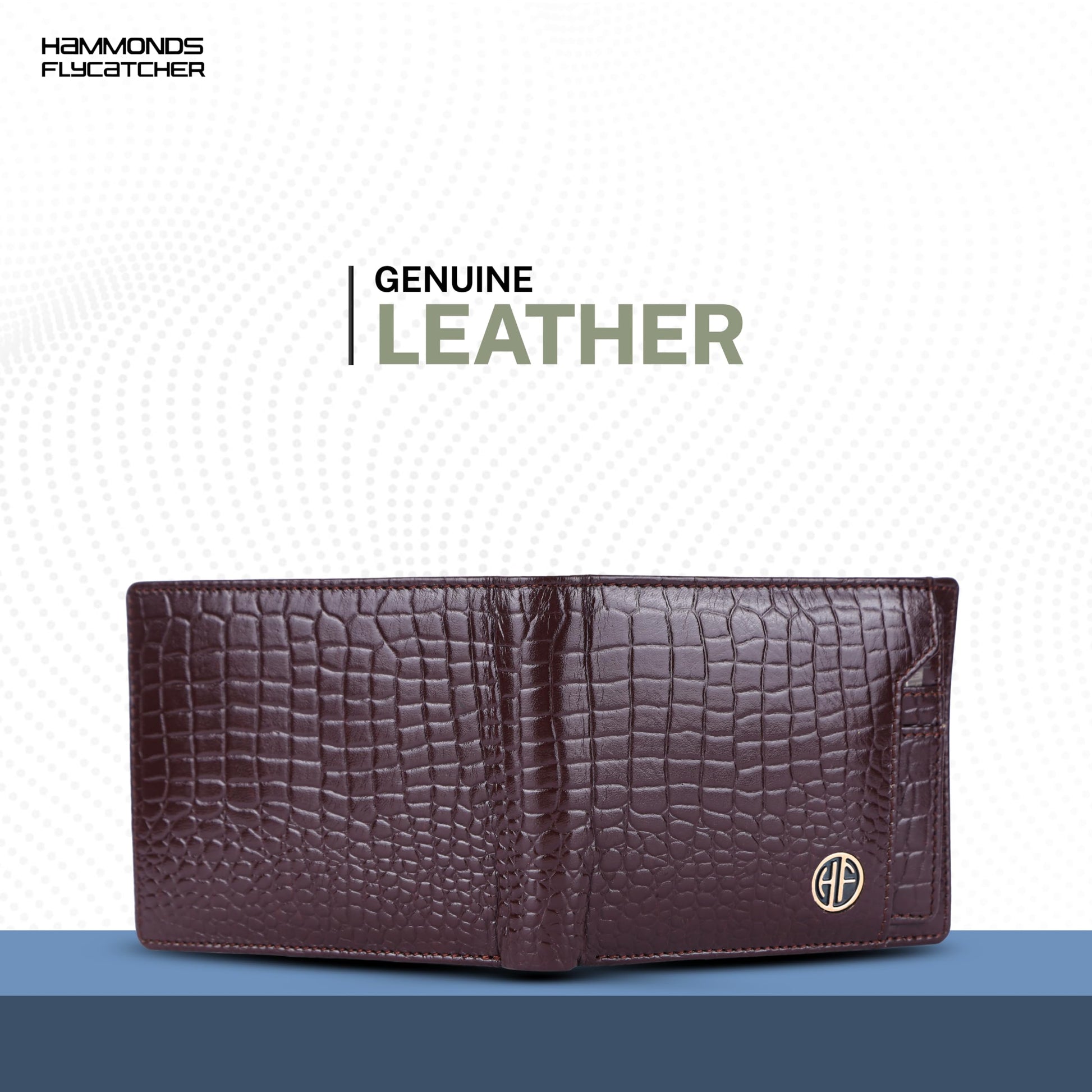 HAMMONDS FLYCATCHER Wallet for Men Leather Original, Mens Wallet, Leather Wallets for Men Stylish, Bi-Fold Wallets for Man, 6 Card Slots, Easy Access Card Slots, Coin Pocket, Mens Gift - Croc Redwood