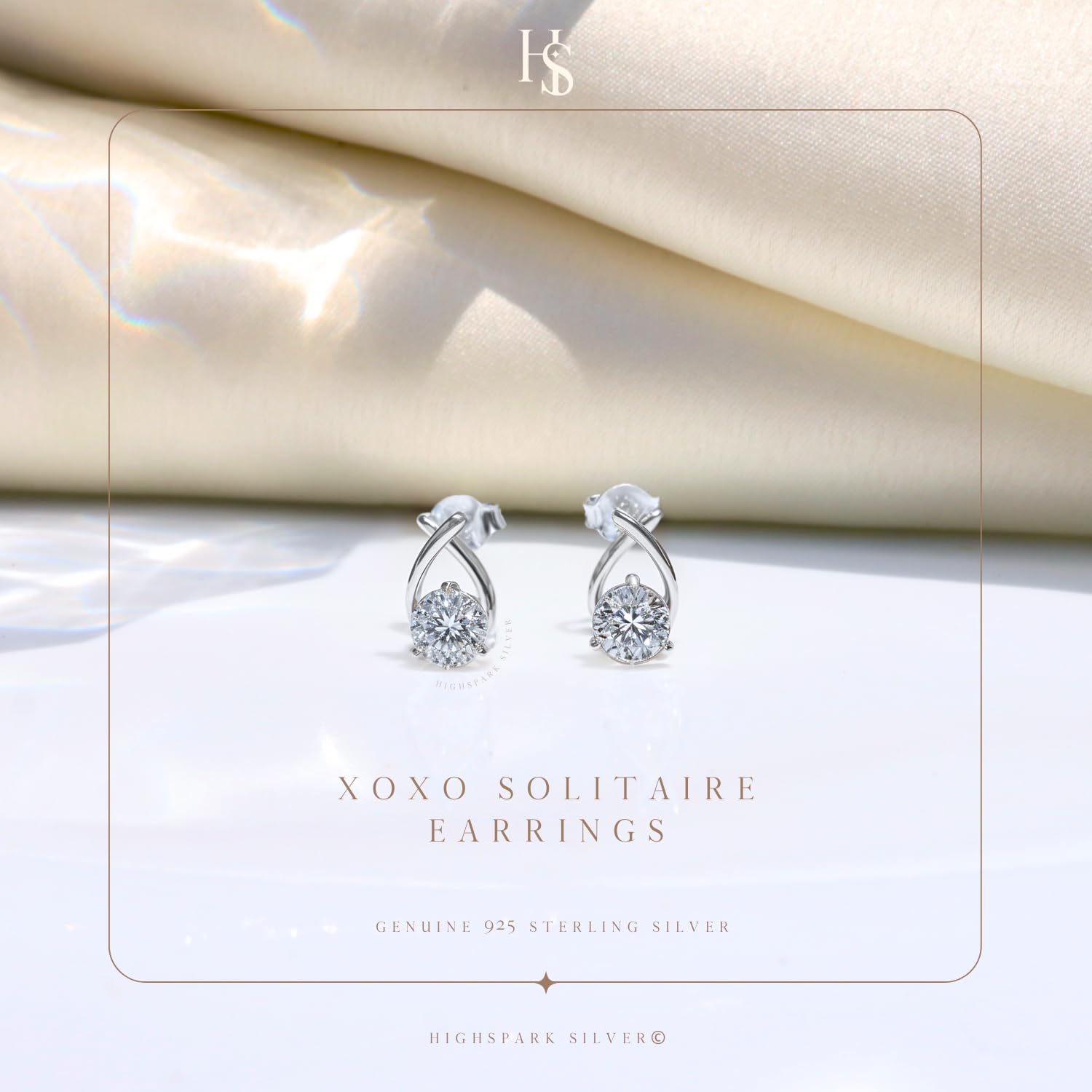 HighSpark Women's 925 Silver Xo Solitaire Earrings | 92.5 Sterling Silver And Diamond Like Brilliance Sparkling Zirconia | Lovely Gift - Xo Solitaire