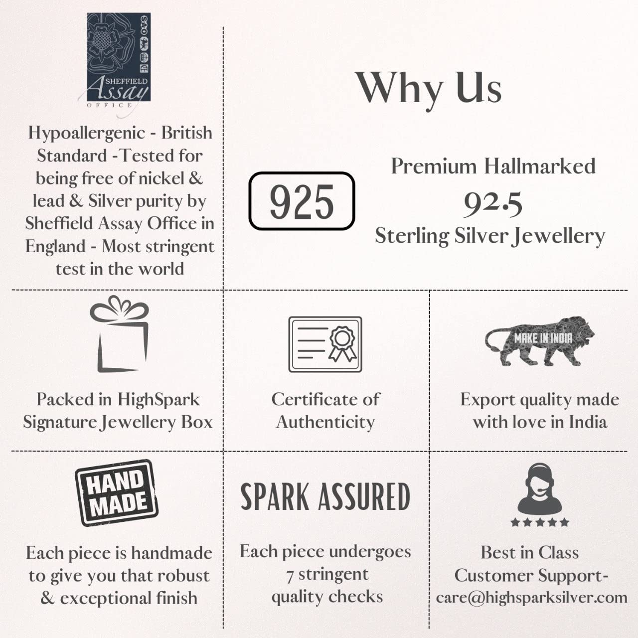 - ๐ ABOUT HIGHSPARK -- HighSpark brings to you modern and contemporary 925 Silver Jewelry. All our Jewelry is 925 engraved. Authenticity Card is provided for Purity of Silver for Gifting.