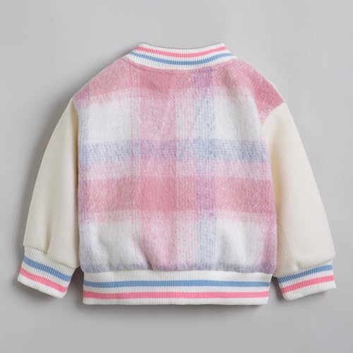 Hopscotch Female Full Sleeves Multi Textured Checkered Jacket For Ages (3-4 Years)