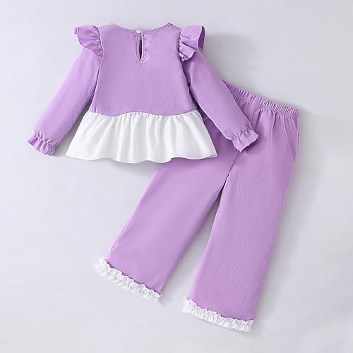 Hopscotch Girls Full Sleeves Lilac 2-Pc Floral Applique Ruffle Trim Pant Set For Age (3-4 Years)