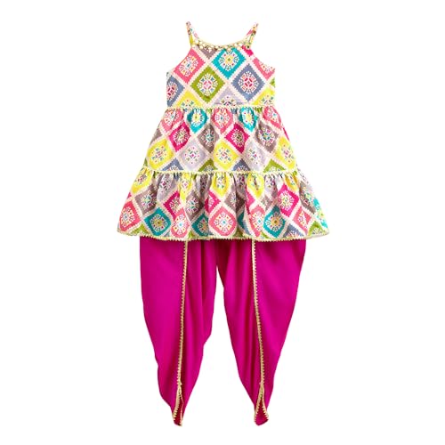 Hopscotch Girls Multi Sleeveless Lace Embellished Kurta And Dhoti For Ages(5-6 Years)
