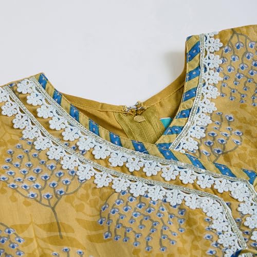 Hopscotch Girls Mustard Full Sleeves Lace Embellished Cambric Dress for Age (4-5 Years)