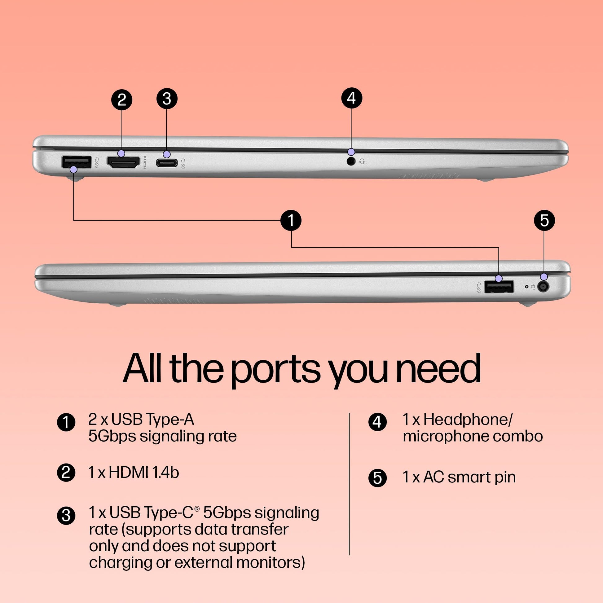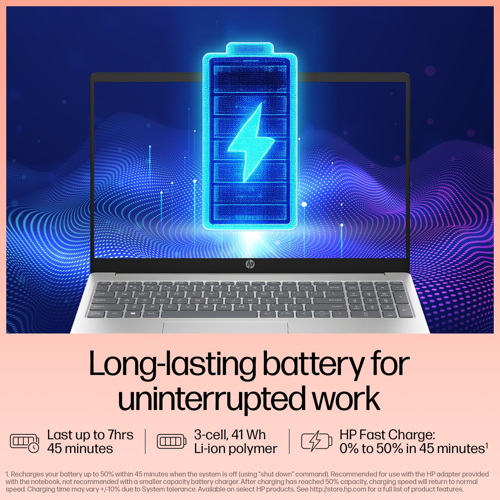 HP 15, 13th Gen Intel Core i5-1334U Laptop (16GB DDR4,512GB SSD) Anti-Glare, Micro-Edge,15.6''/39.6cm, FHD, Win11,M365,Office24, Silver,1.59kg, Iris Xe Graphics,FHD Camera w/Privacy Shutter, fd0577TU