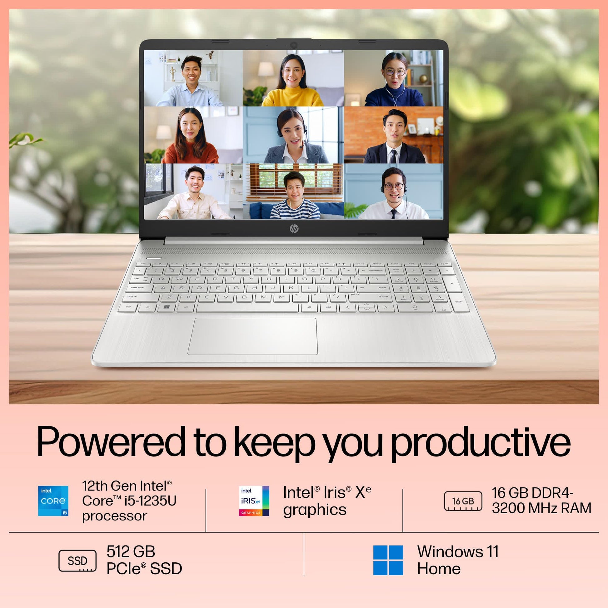 HP 15s, 12th Gen Intel Core i5-1235U,16GB DDR4, 512GB SSD (Win11, Office21, Silver, 1.69kg) Anti-Glare,15.6-inch(39.6cm), FHD Laptop, Intel Iris Xe Graphics, Backlit KB, HD Camera, fq5330TU