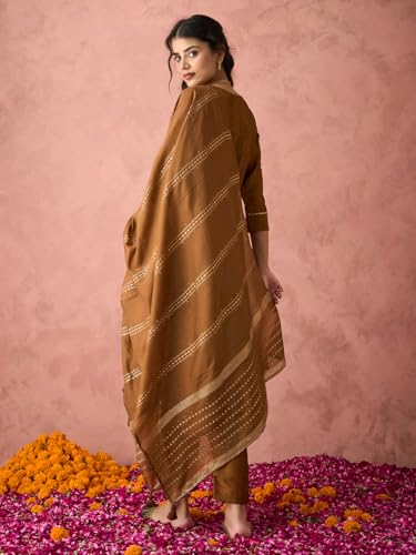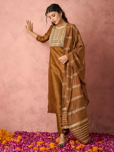 Hritika Women's Brown Silk Blend Embroidered Kurta Set with Dupatta_RE_HRKBD0200BROWN_L