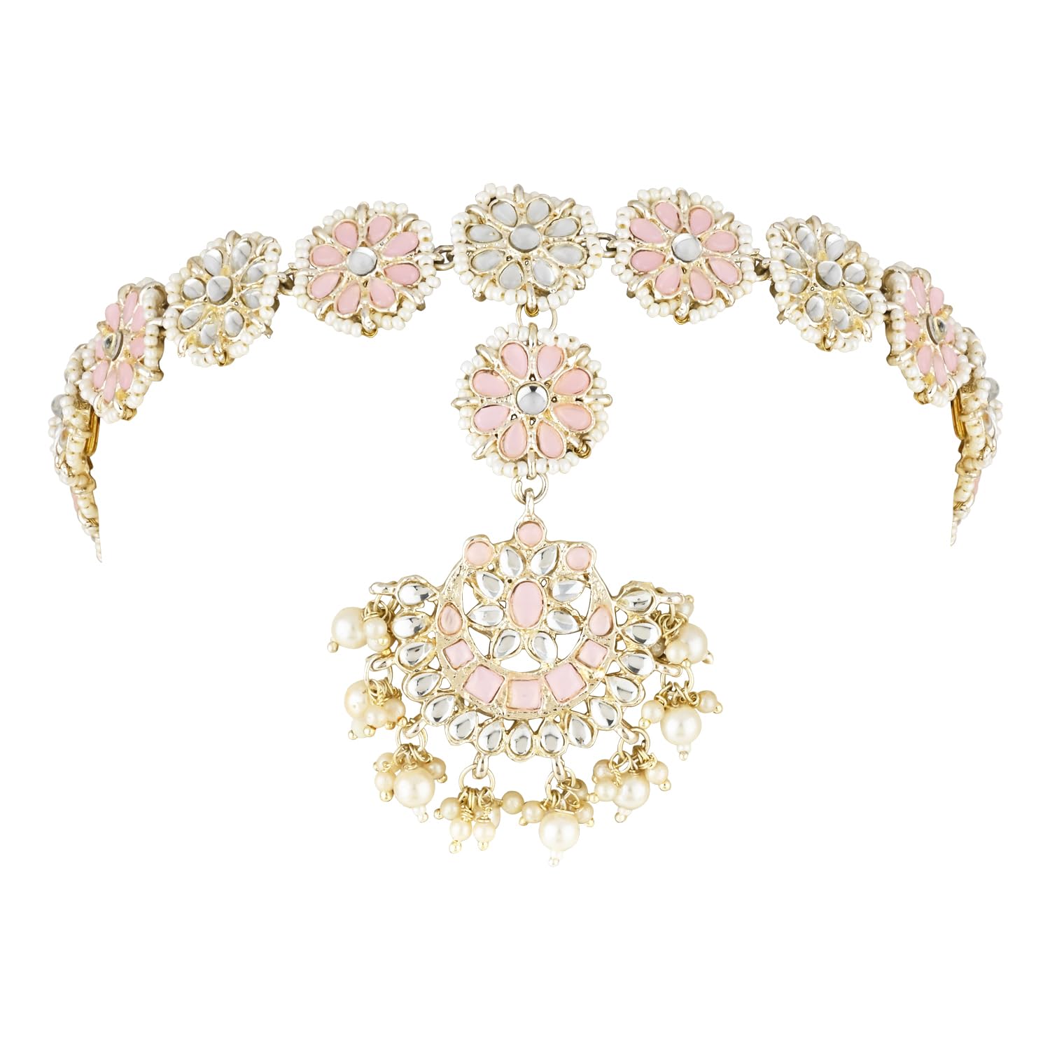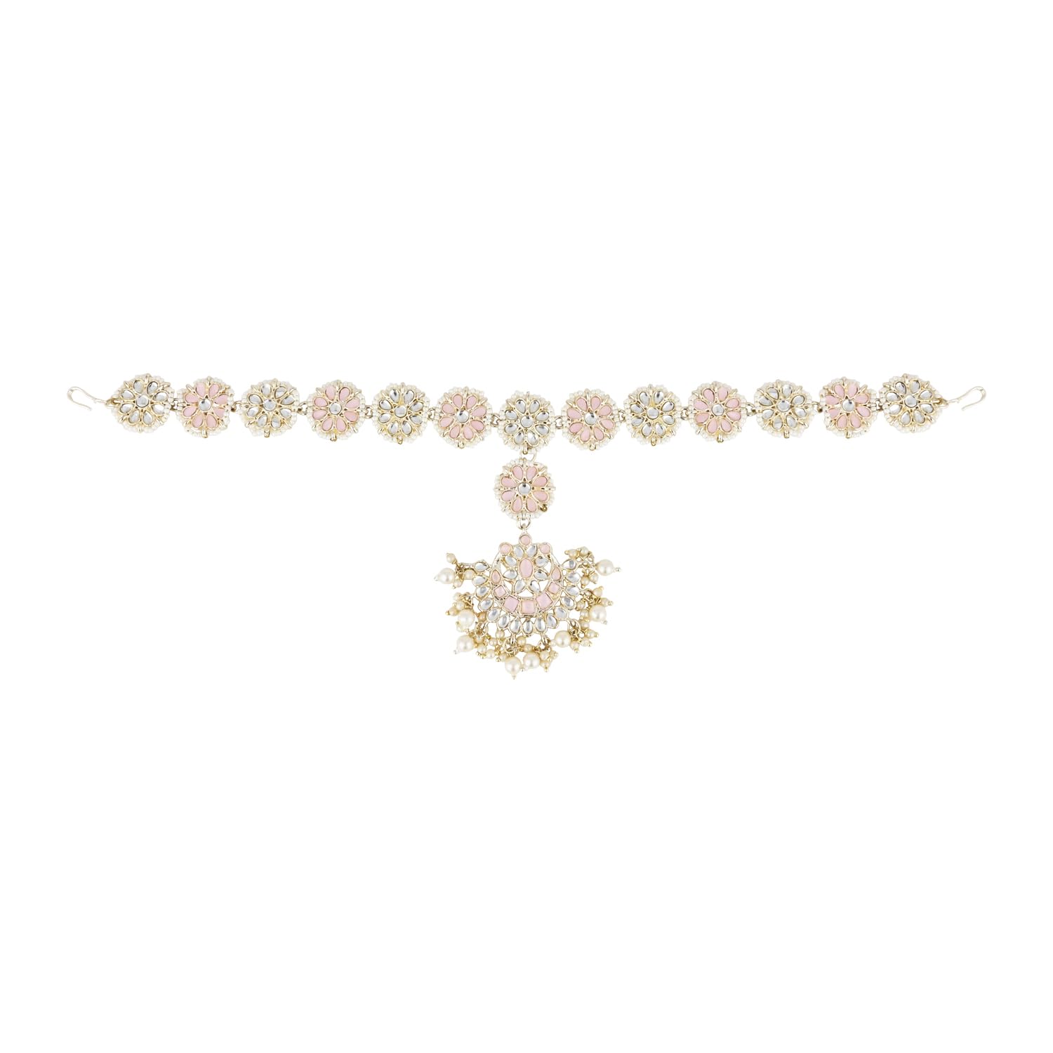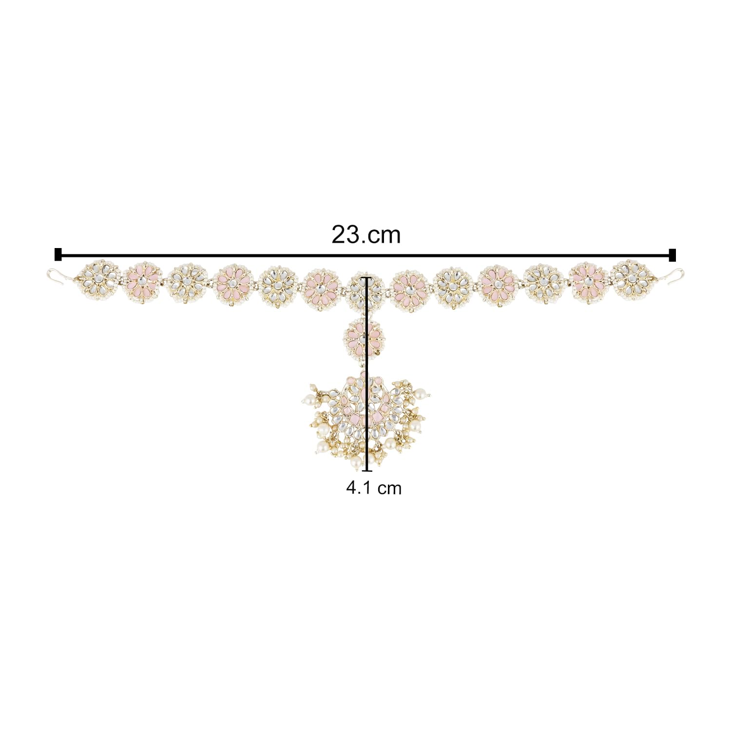 I Jewels Gold Plated Traditional Floral Kundan Pearl Studded Rajasthani Sheeshphool Matha Patti/Sheeshpatti for Women (T2066Pi)