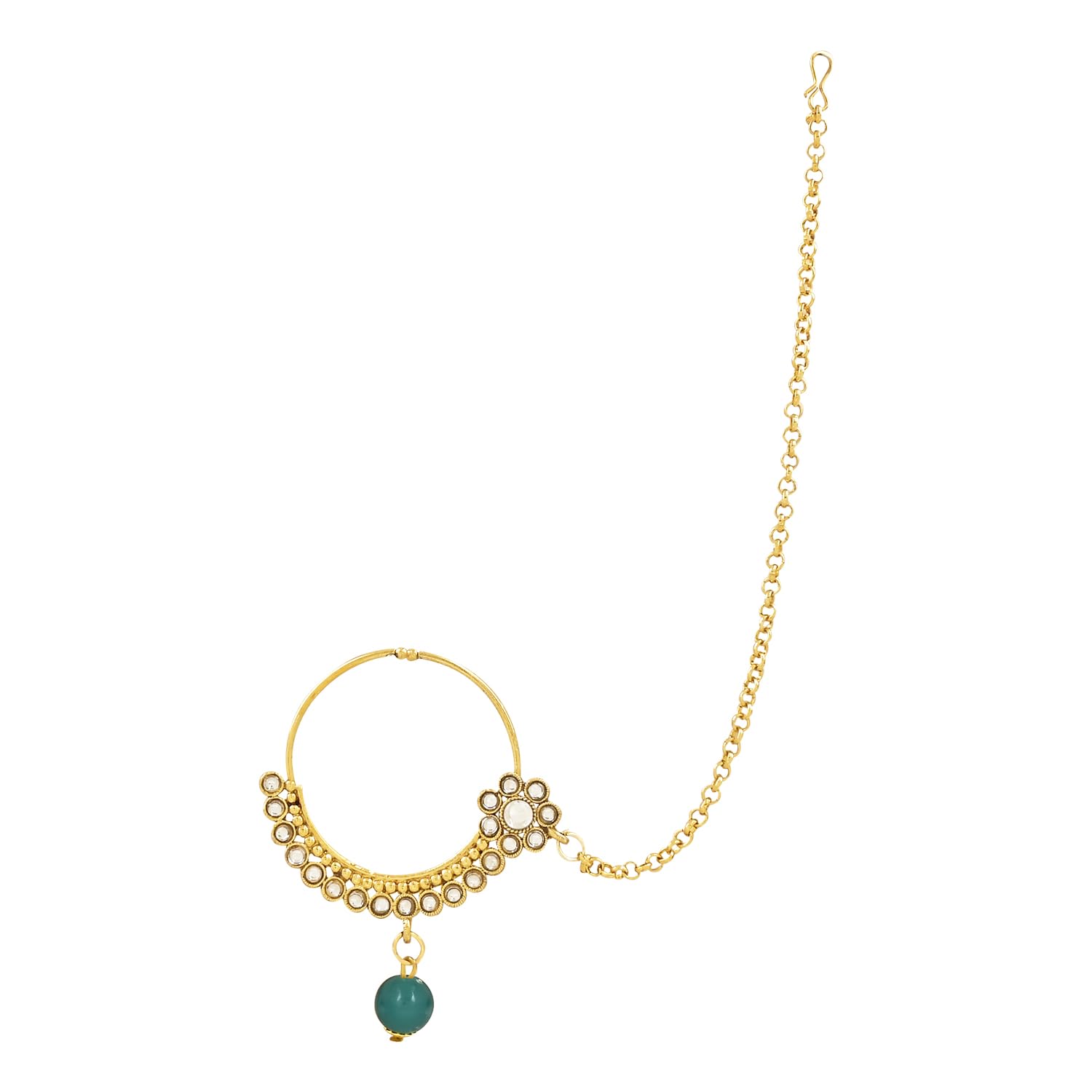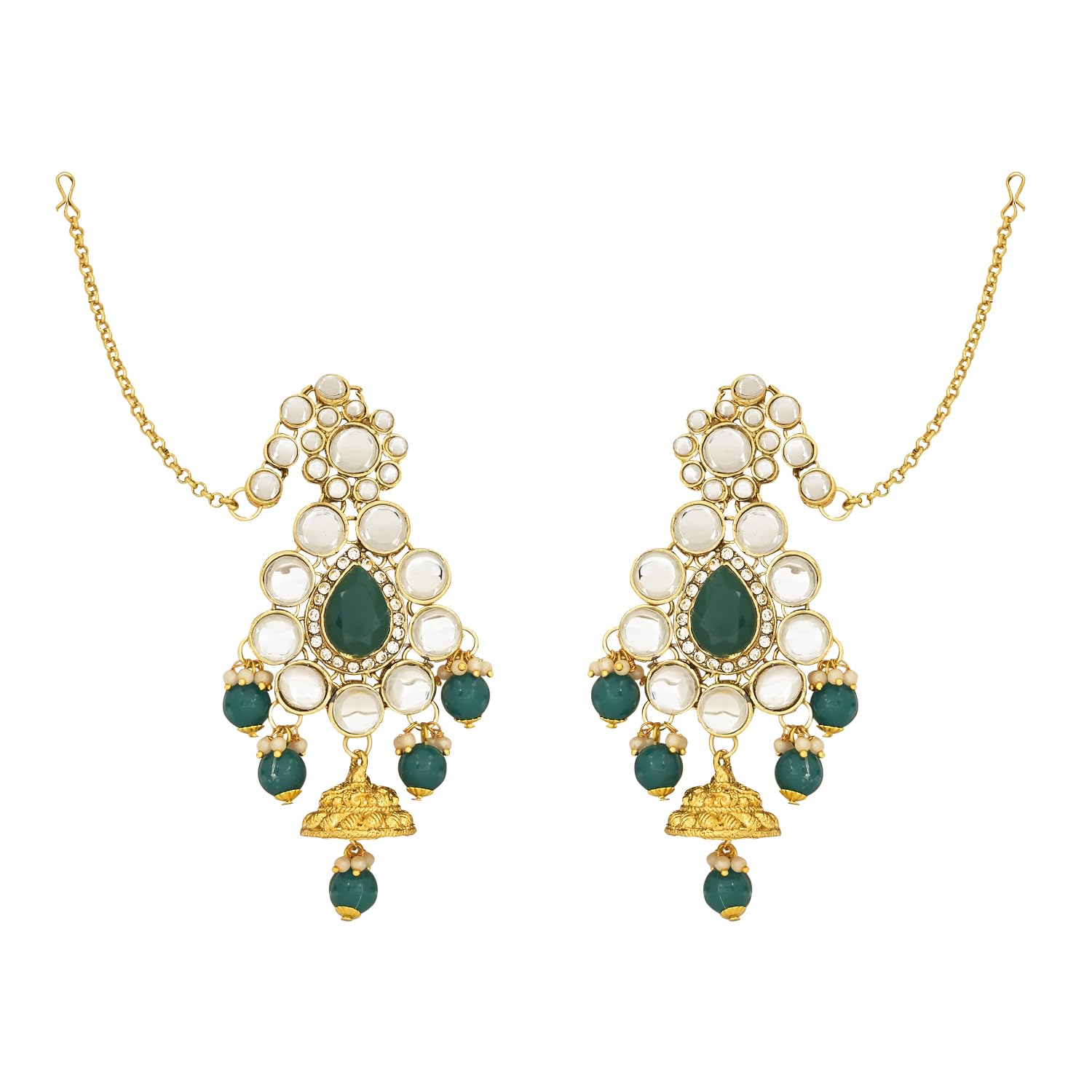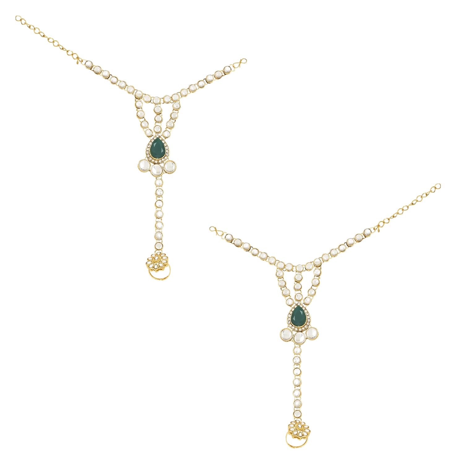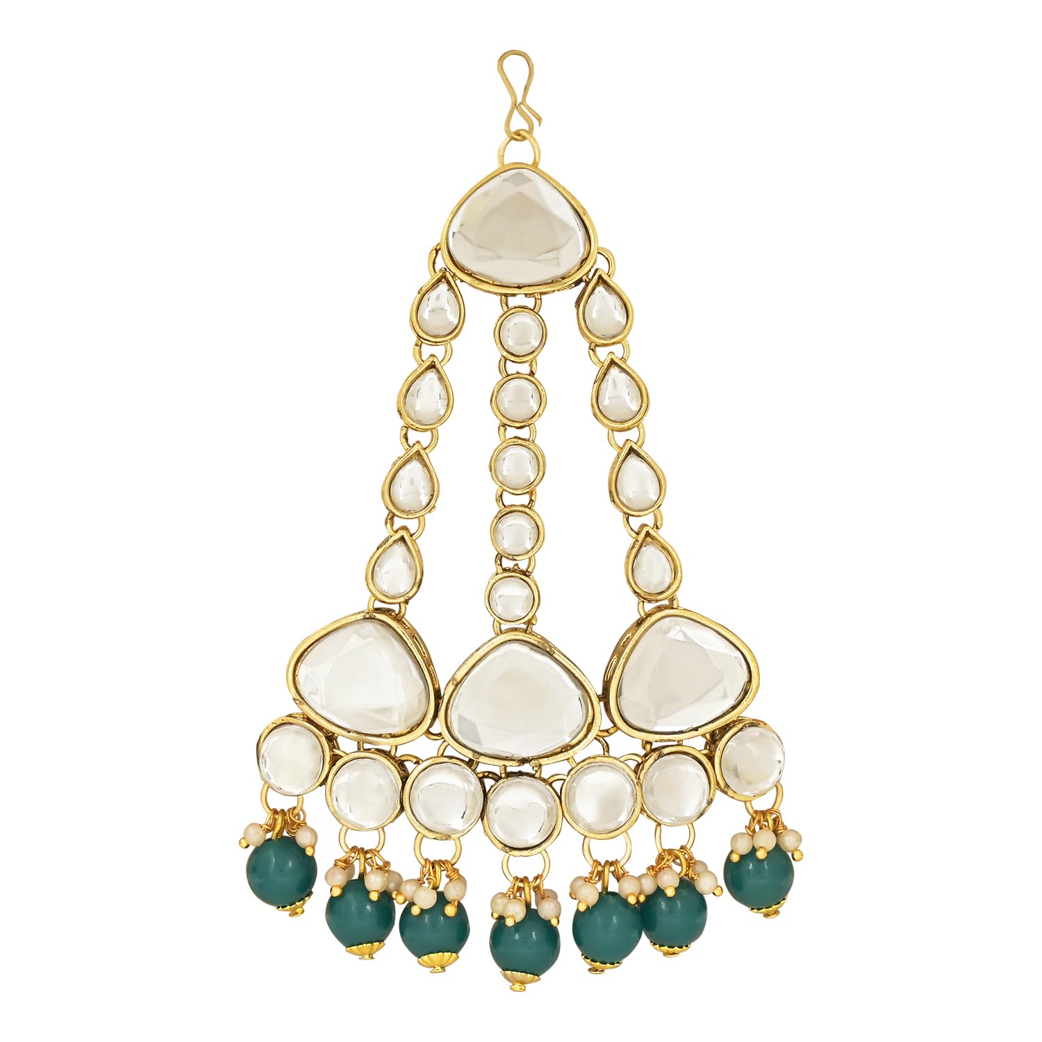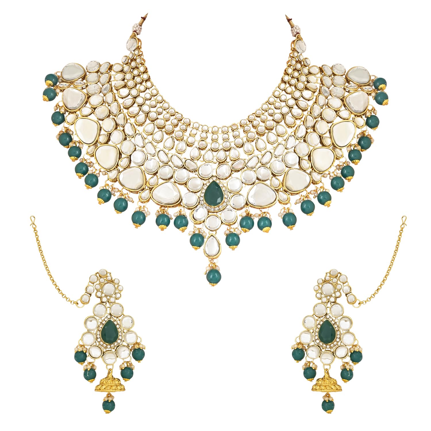 I Jewels Wedding Collection Traditional Ethnic Gold Plated Pearl & Kundan Stone Work Bridal Jewellery Set For Women (Green) (BLP036G)