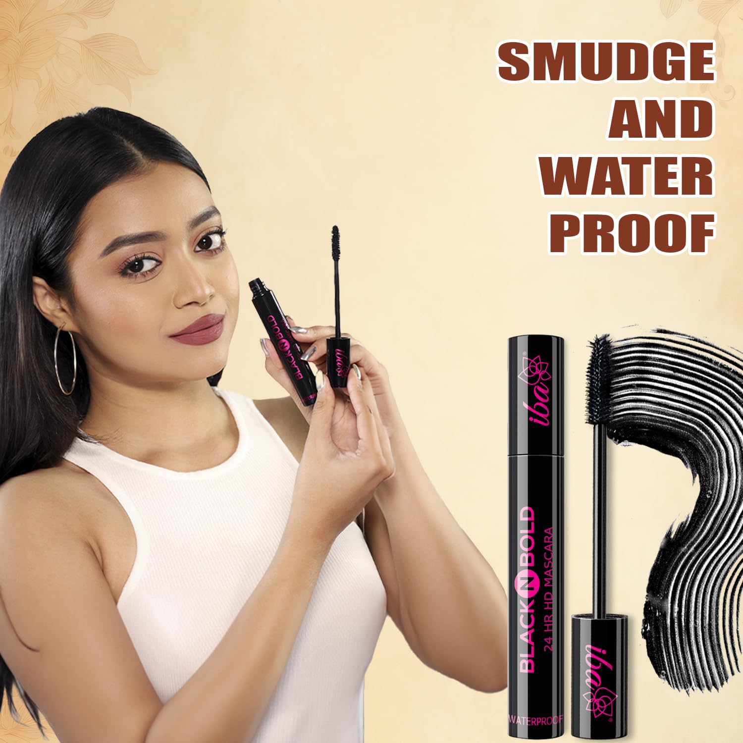Iba Black N Bold 24 Hr Hd Mascara, Black, 8 ml | Waterproof, Lengthening, Curling, Volumising | 100% Vegan & Cruelty Free