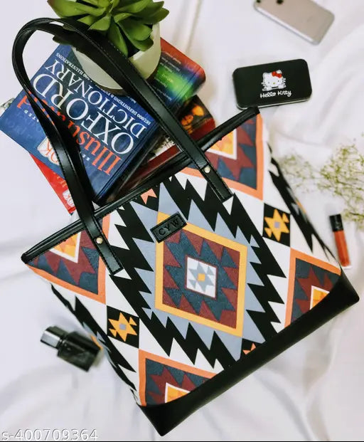 Elegant looking Shopper for you to carry all day long. Smart geometrical print with high quality faux leather at the bottom adding to it's perceive value. Zip top closure with back pocket for added convenience. Having enough space to carry all your daily utilities with ease. Keep your stuff sorted with premium looking shopper.