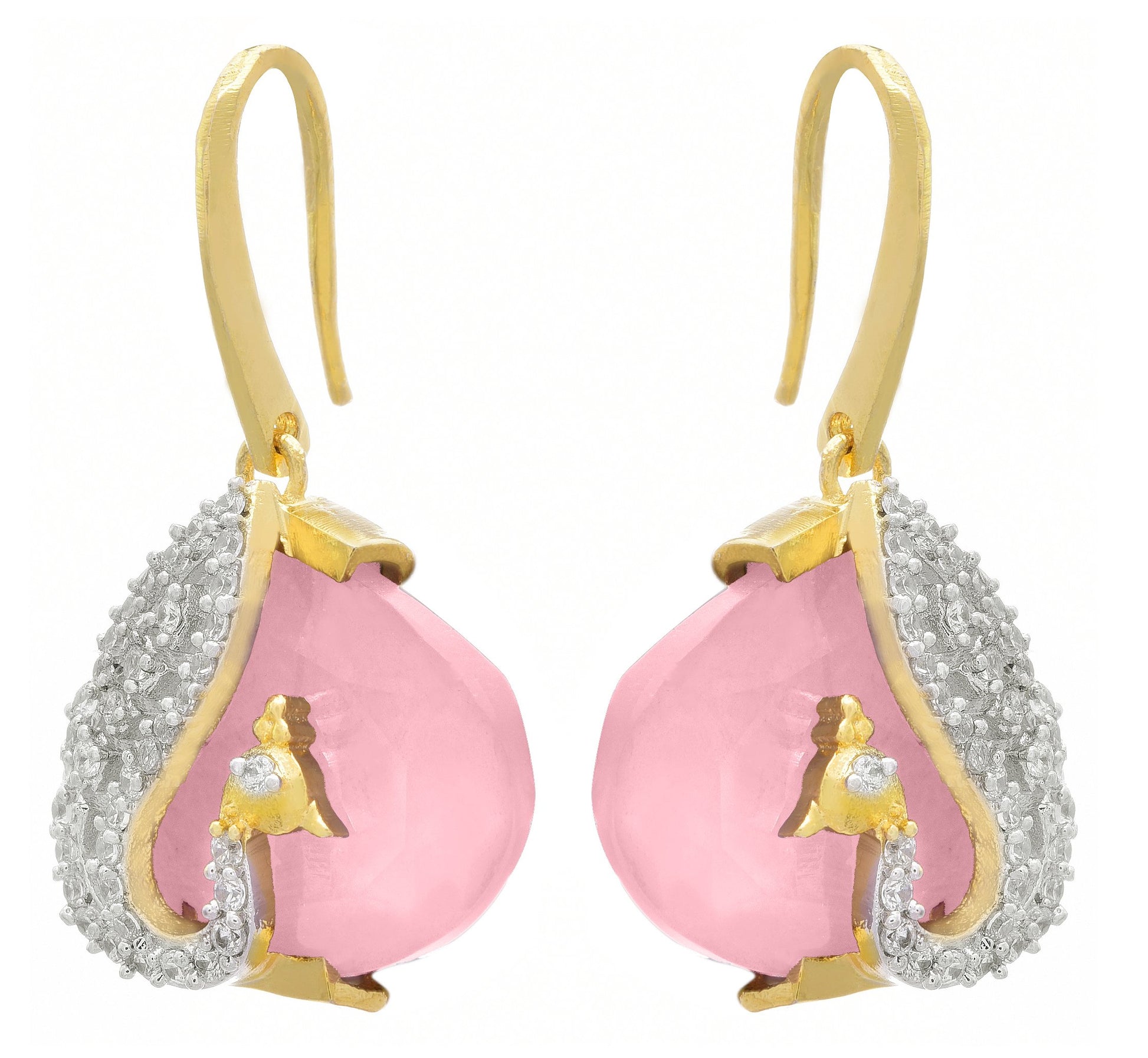 JFL- Fusion Ethnic One Gram Gold Plated Peacock Cz American Diamond Designer Earrings for Women and Girls (Baby Pink),Valentine