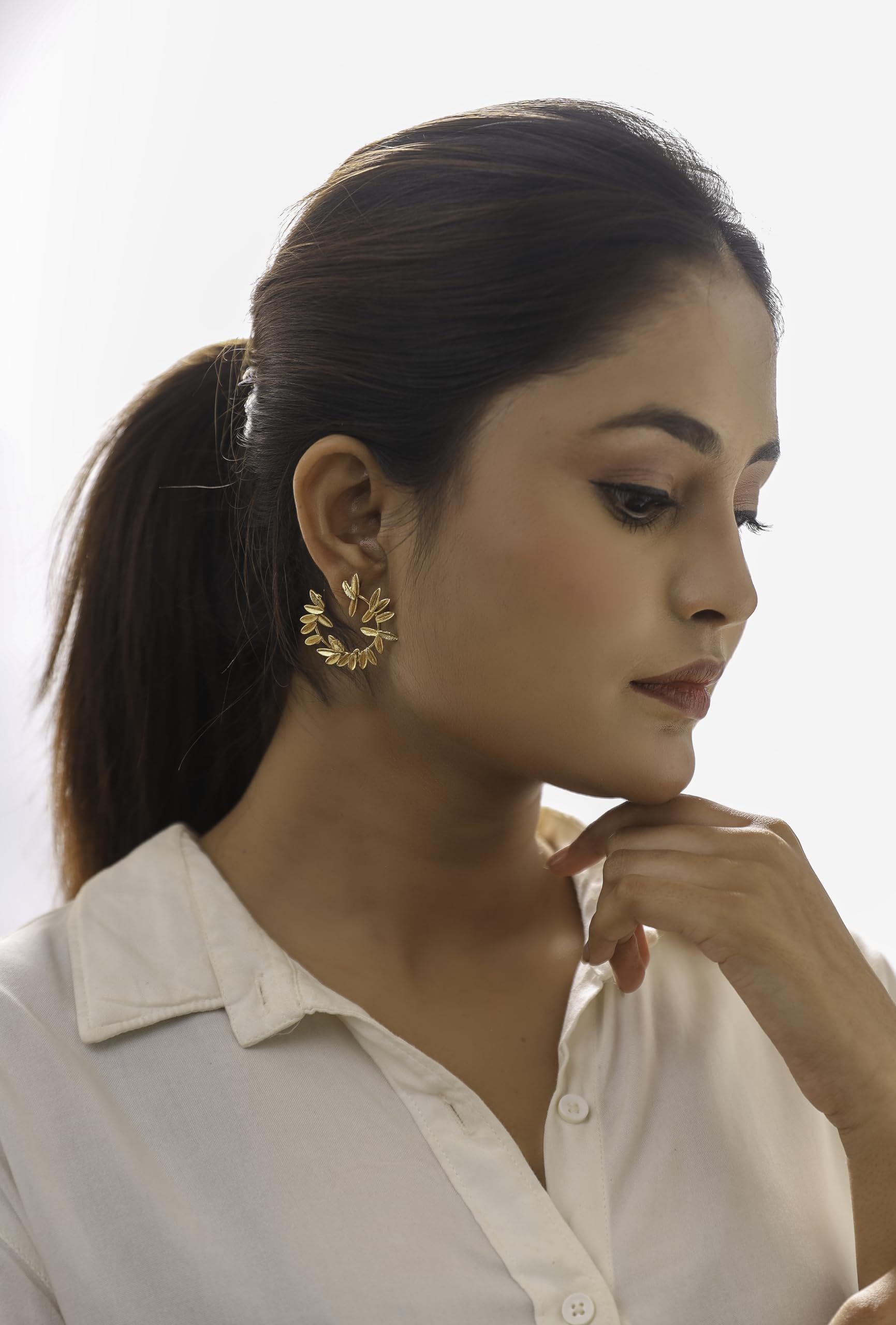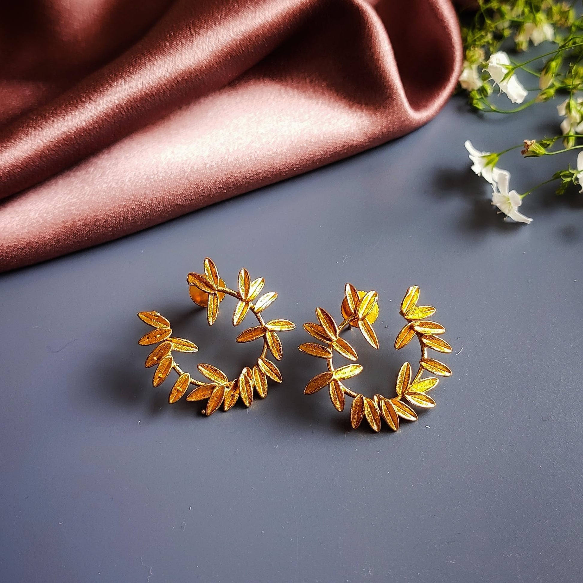 Jiaara Handcrafted Pure Brass Golden Earrings | Gold Plated Trendy Earrings Demifine For Women & Girls | Latest Stylish Fashion Jewelry, Elegant & Chic Earrings For Everyday Wear & Special Occasions