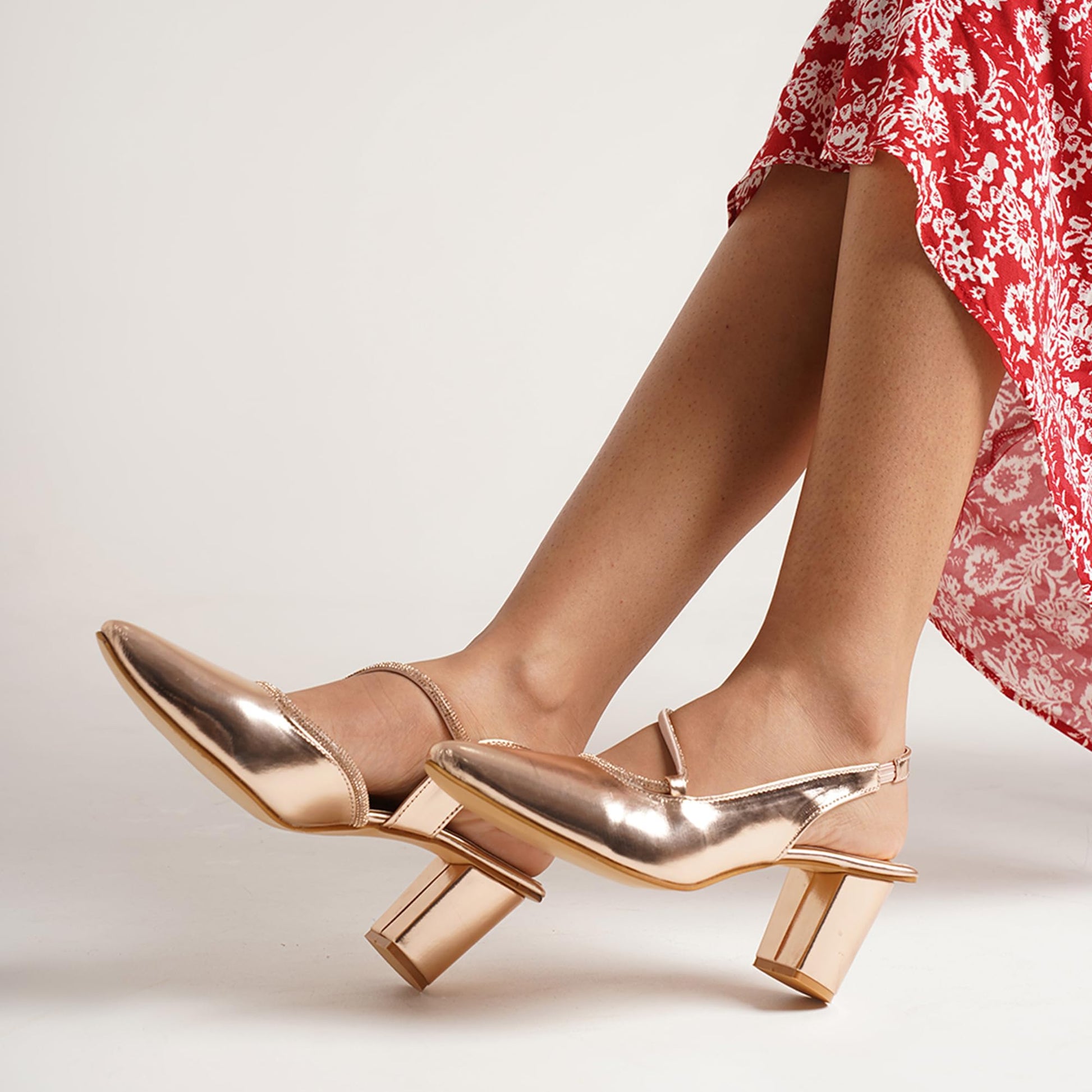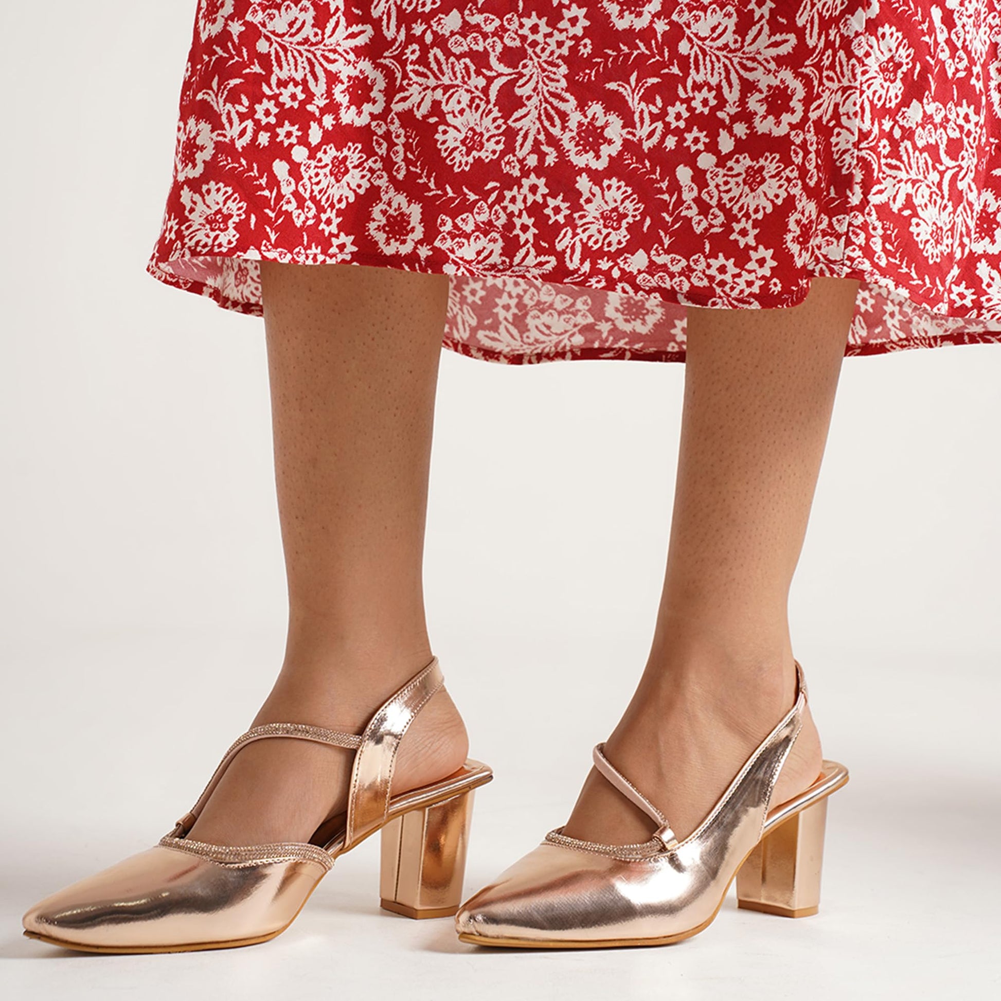 JM LOOKS Women's Block Heels Pointed Toe with Stylish Crystal Strap | Sandals | Women Sandal Comfortable Cushioned Footbed for parties Wedding Office - Sultan