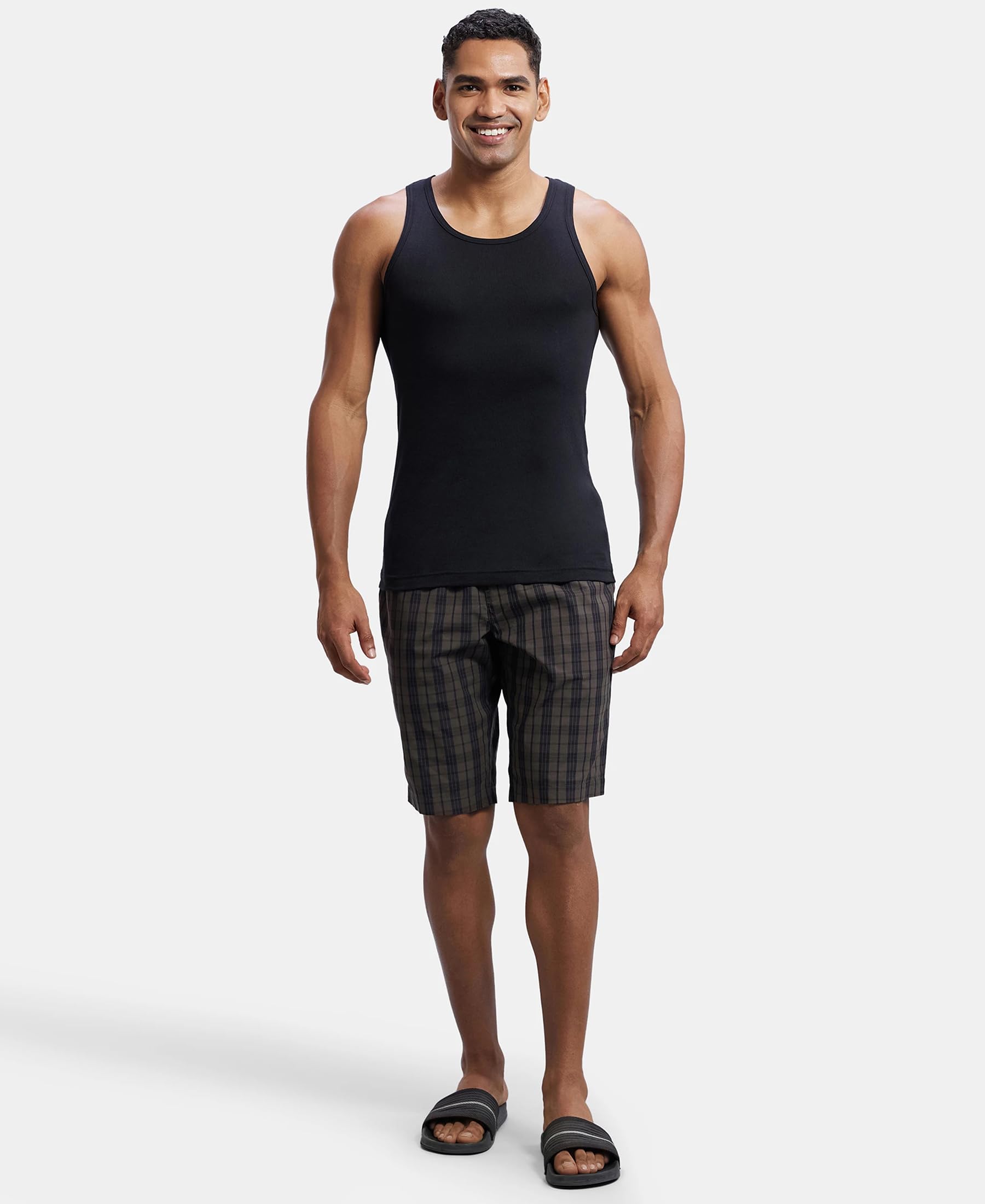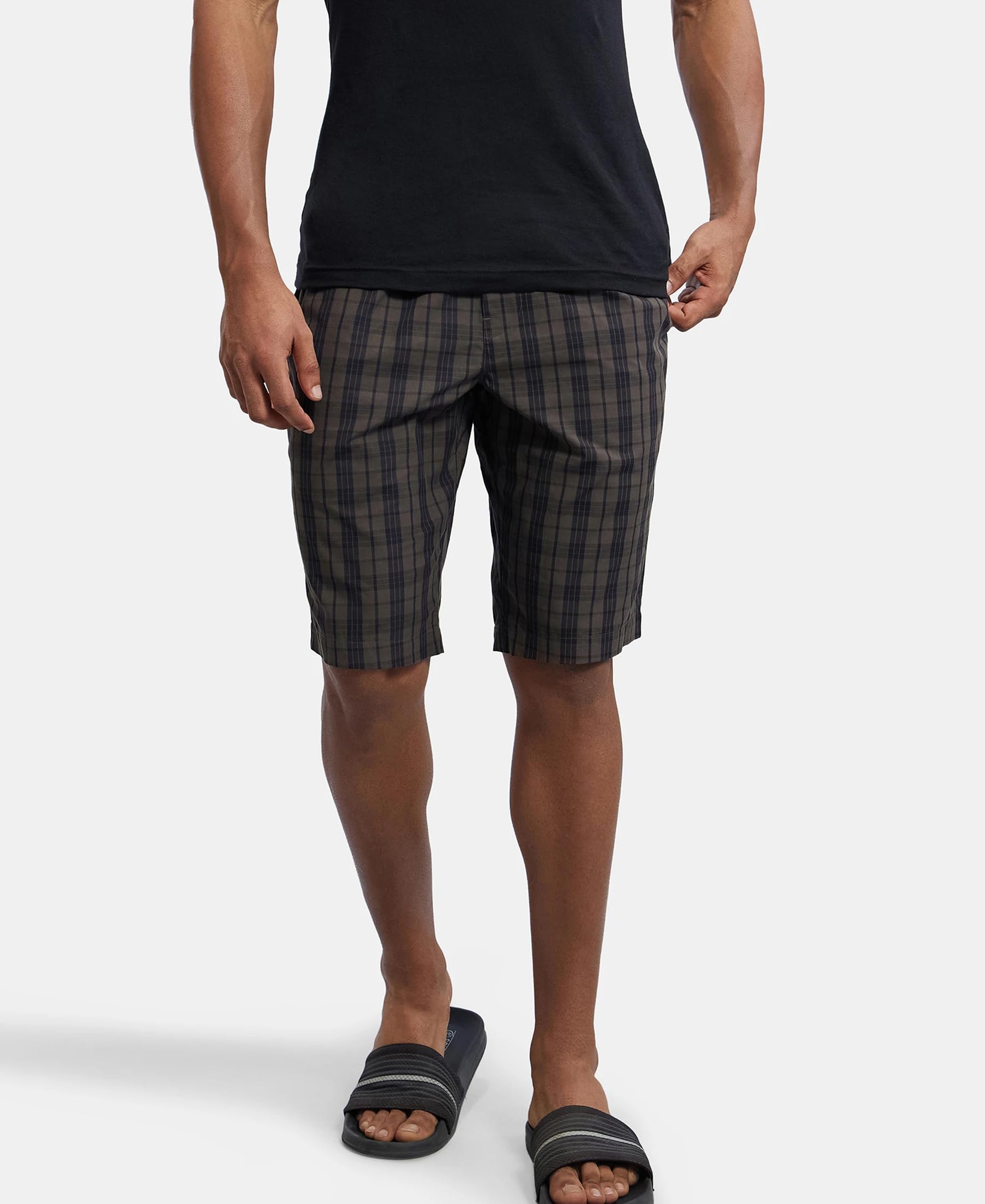 Jockey 9005 Men's Super Combed Mercerized Cotton Woven Fabric Regular Fit Checkered Bermuda with Side Pockets_Black Olive_M