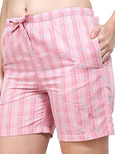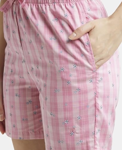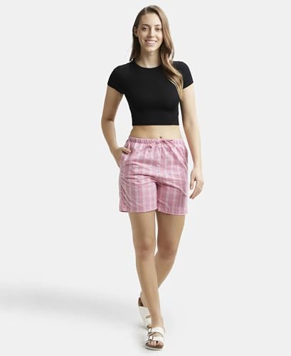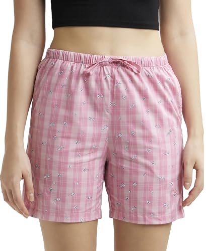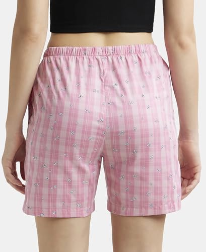 Jockey RX15 Women's Super Combed Cotton Woven Relaxed Fit Checkered Shorts with Side Pockets (Prints May Vary)_Wild Rose_L