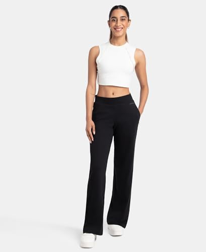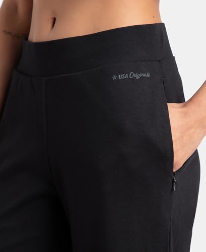 Jockey U102 Women's Super Combed Cotton Rich Relaxed Fit Wide Leg Pants with Zipper Pockets_Black_L