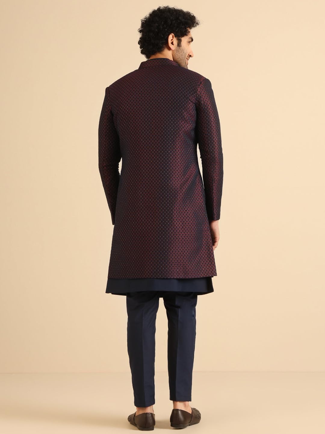 KISAH Jacket Sherwani Set for Men – Woven Design Jacquard Sherwani with Trouser | Ethnic & Formal Indian Outfit for Weddings, Celebrations & Parties, Wine, 42