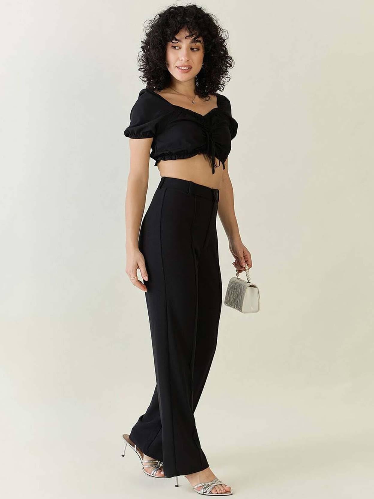 KOTTY Women Solid Polyester Blend Black Trouser (Black,30)